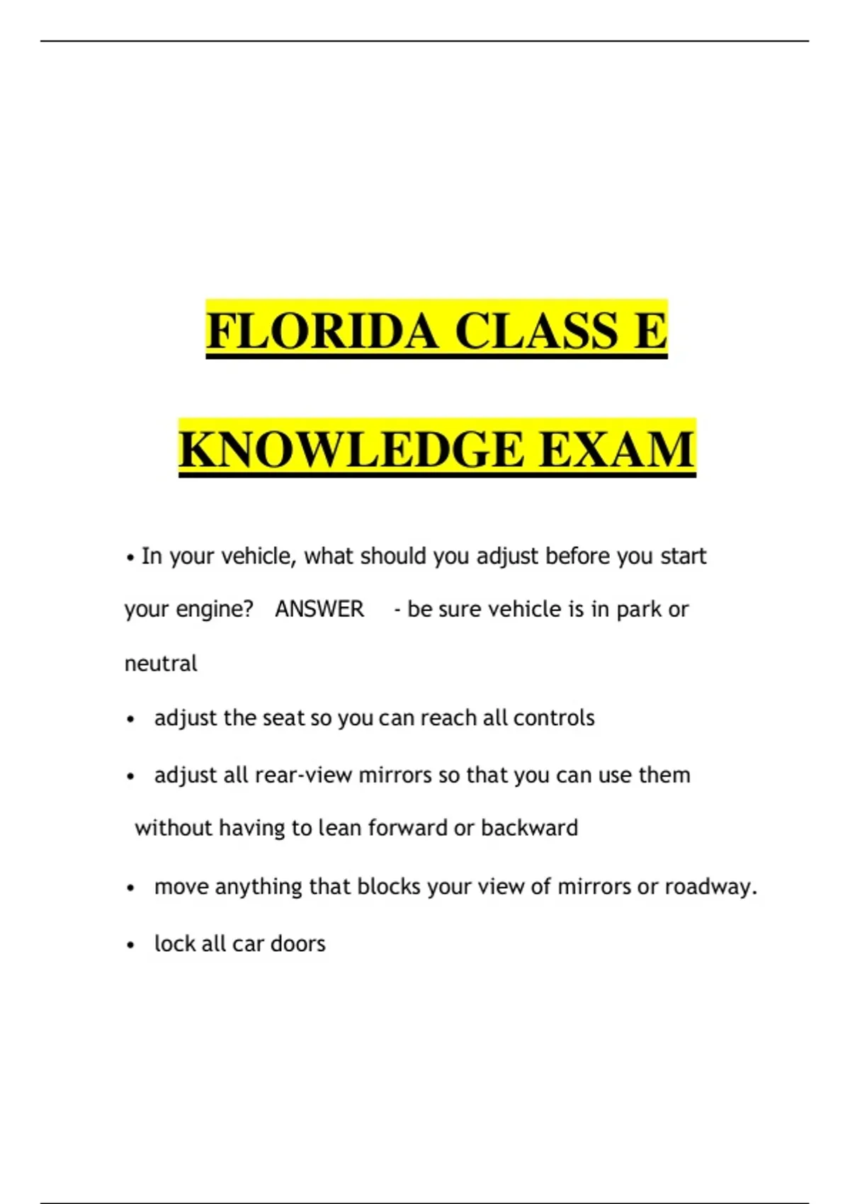 Florida Class E Knowledge