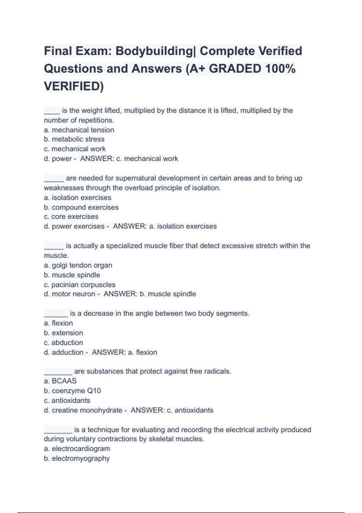 Final Exam: Bodybuilding| Complete Verified