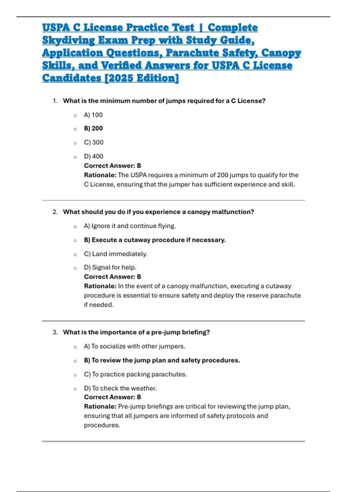Skills, and Verified Answers for USPA C License