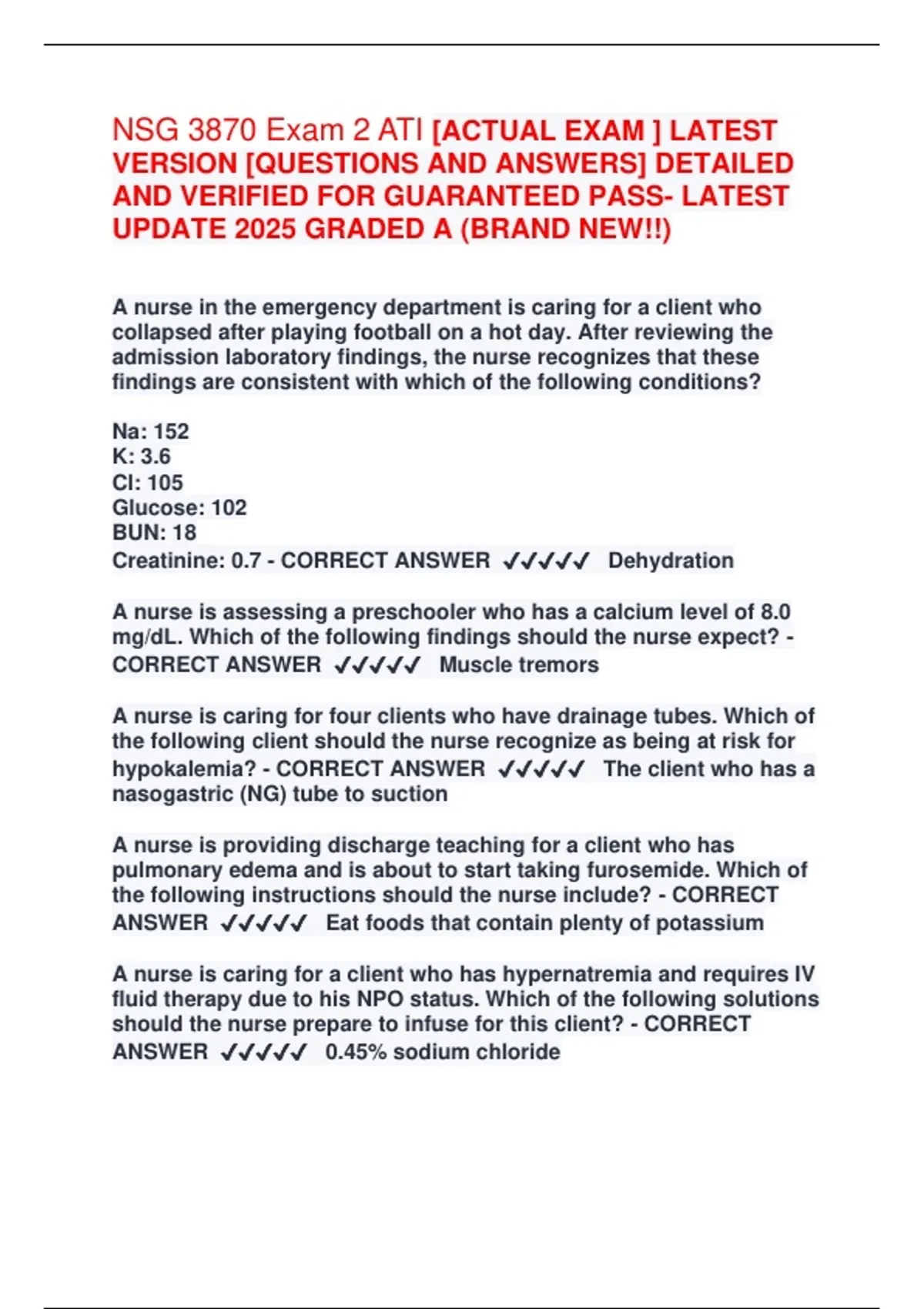 NSG 3870 Exam 2 ATI [ACTUAL EXAM ] LATEST VERSION [QUESTIONS AND ANSWERS] DETAILED AND VERIFIED FOR GUARANTEED PASS- LATEST UPDATE 2025 GRADED A (BRAND NEW!!) //NSG 3870 Exam 2 ATI [ACTUAL EXAM ] LATEST VERSION [QUESTIONS AND ANSWERS] DETAILED AND VE