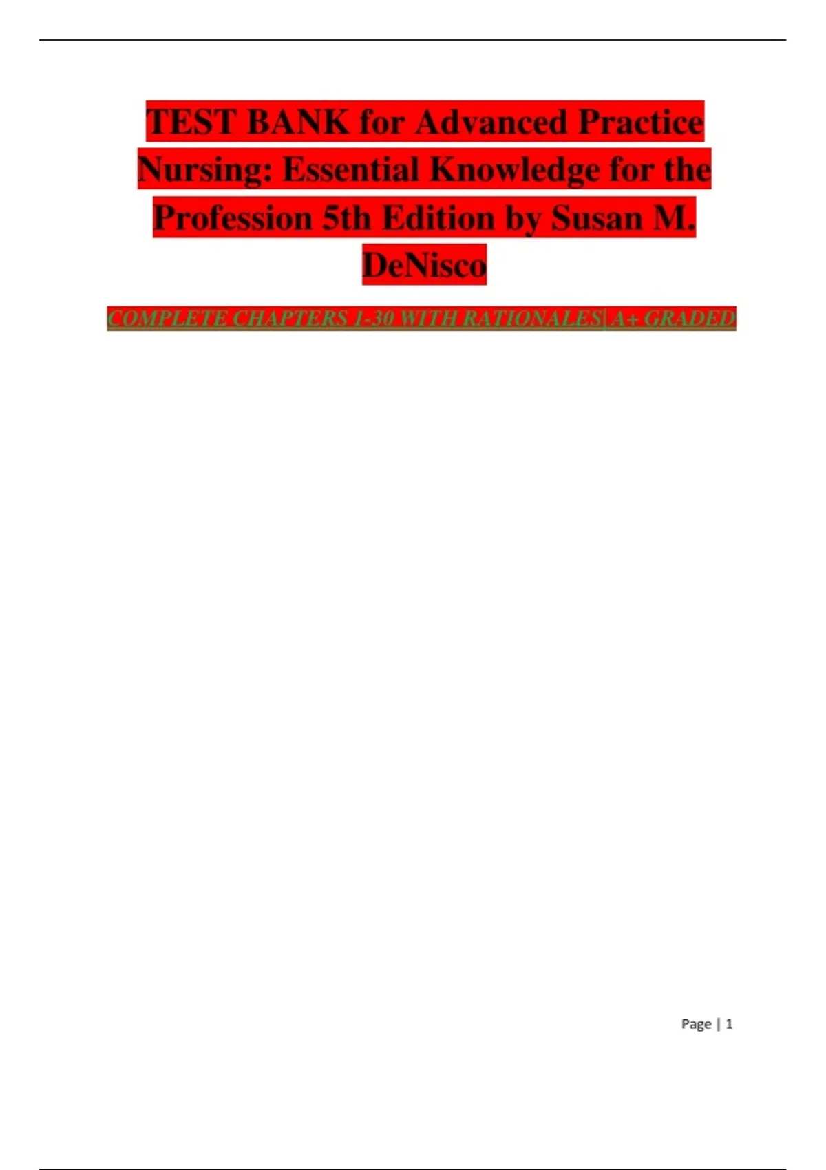 This comprehensive test bank for Advanced Practice Nursing: Essential Knowledge for the Profession, 5th Edition by Susan M. DeNisco includes all chapters (1–30) with verified questions, correct answers, and detailed rationales. Covering advanced nursing roles, clinical decision-making, patient management, ethics, leadership, and professional development, this resource is designed for graduate-level nursing students, educators, and exam preparation. It strengthens knowledge, builds exam confidence, and ensures success in advanced practice nursing courses and certification exams.