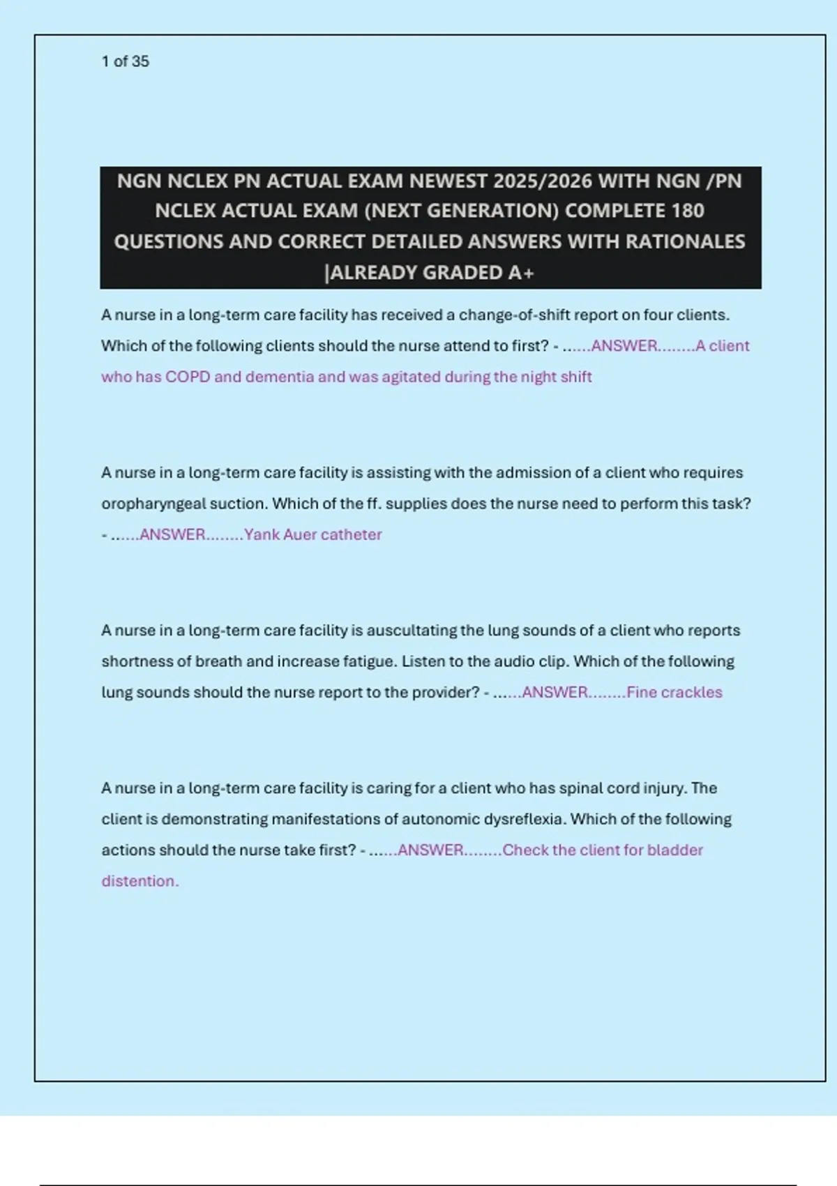 NGN NCLEX PN ACTUAL EXAM NEWEST 2025/2026 WITH NGN /PN