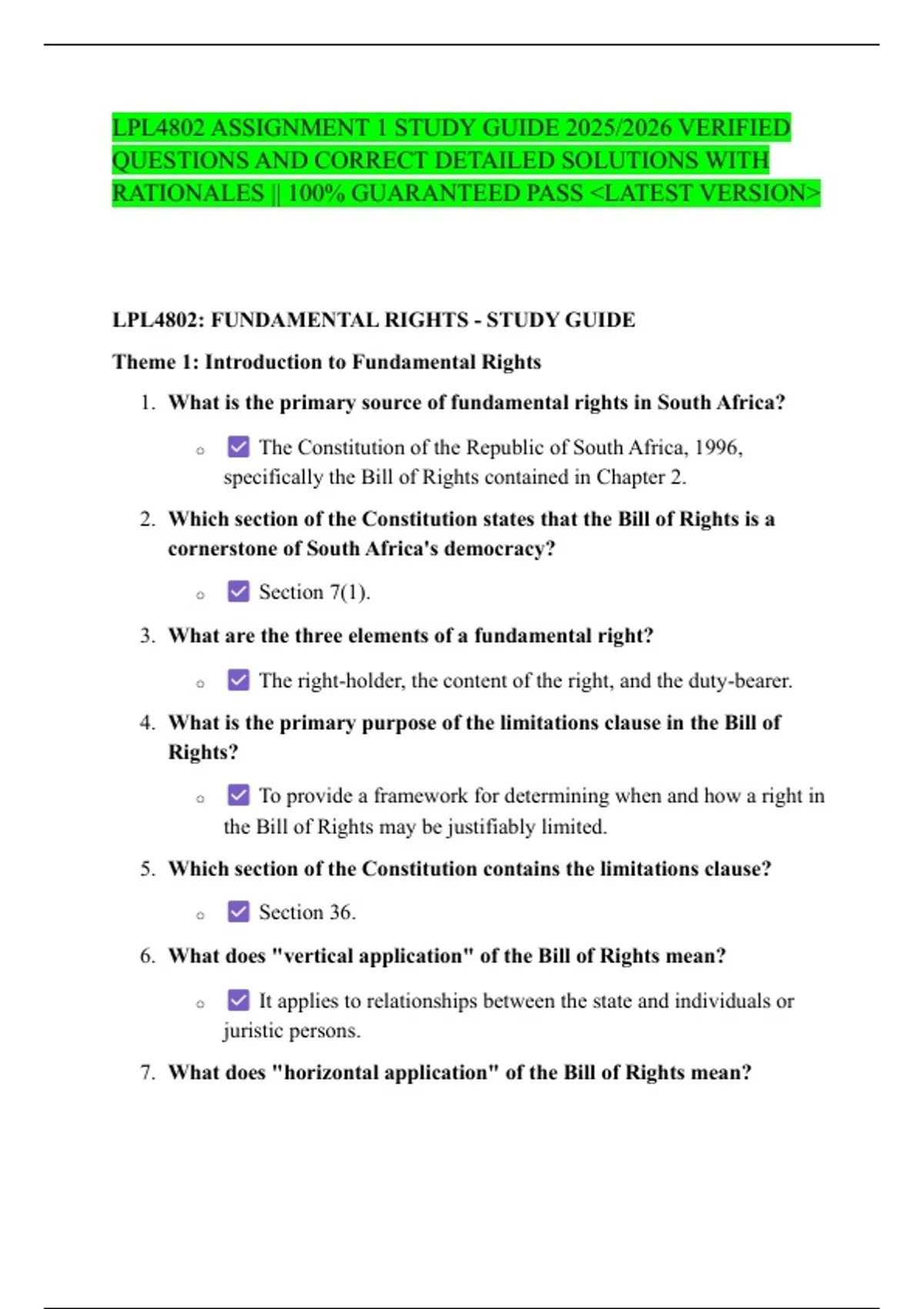 LPL4802 ASSIGNMENT 1 STUDY GUIDE 2025/2026 VERIFIED QUESTIONS AND CORRECT DETAILED SOLUTIONS WITH RATIONALES || 100% GUARANTEED PASS <LATEST VERSION>