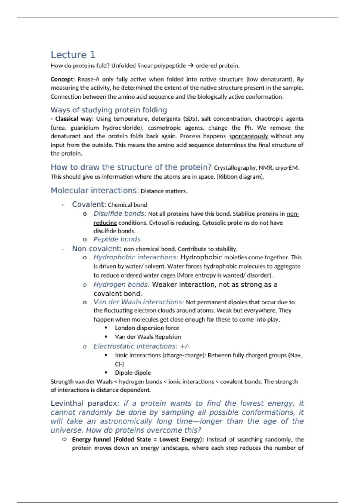 - Non-covalent: non-chemical bond. Contribute to stability.