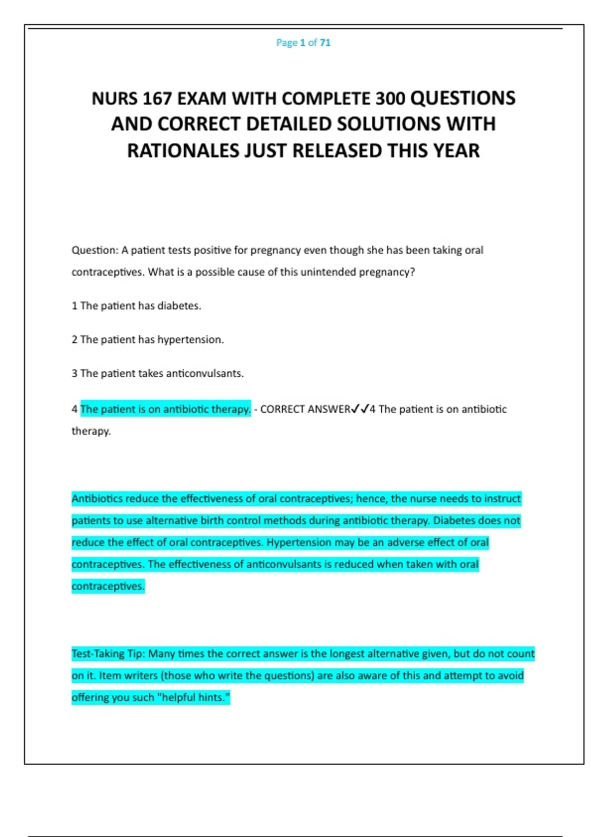 NURS 167 EXAM WITH COMPLETE 300 QUESTIONS