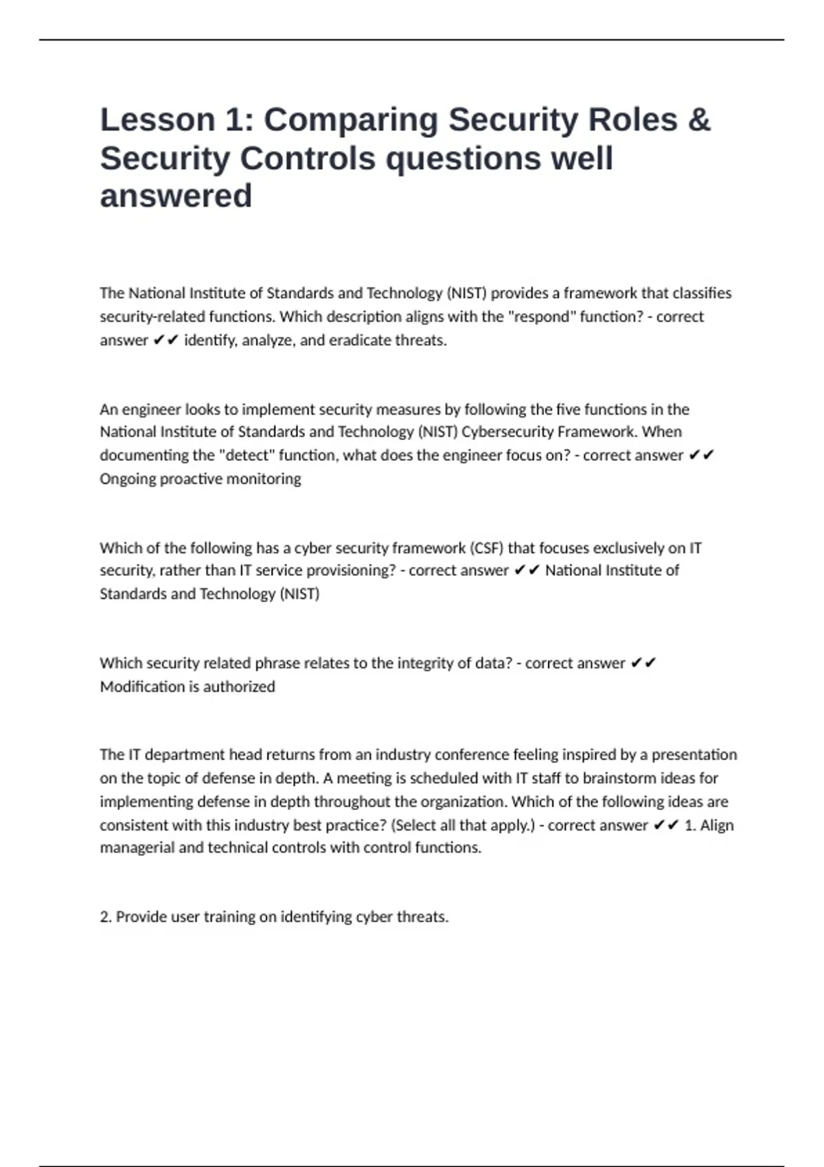 security, rather than IT service provisioning? - correct answer ✔✔ National Institute of