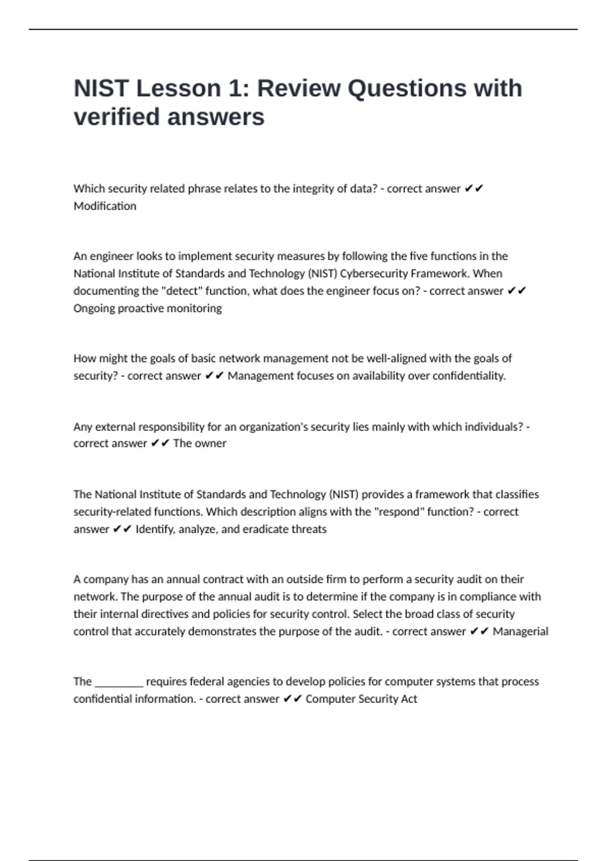 confidential information. - correct answer ✔✔ Computer Security Act