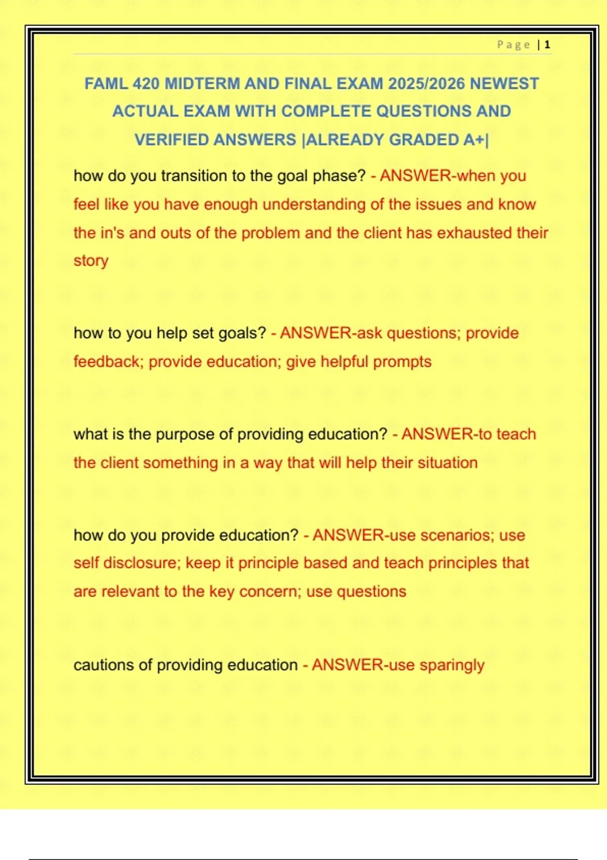 FAML 420 MIDTERM AND FINAL EXAM 2025/2026 NEWEST