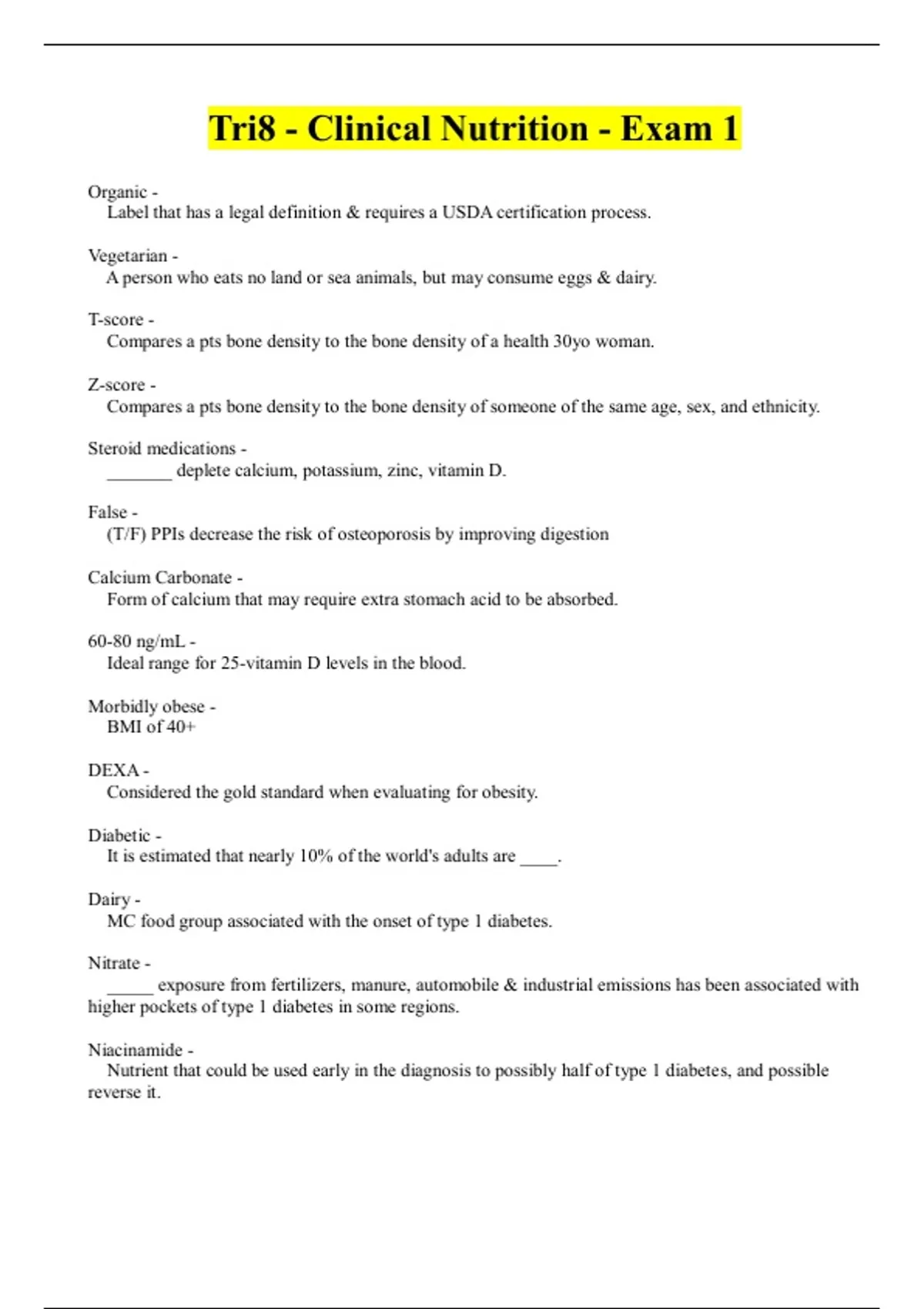 Tri8 - Clinical Nutrition - Exam 1. Document information
