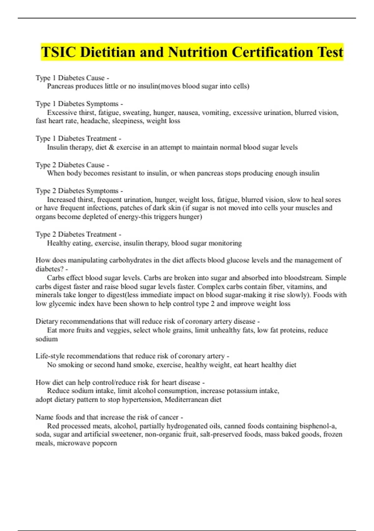 TSIC Dietitian and Nutrition Certification Test