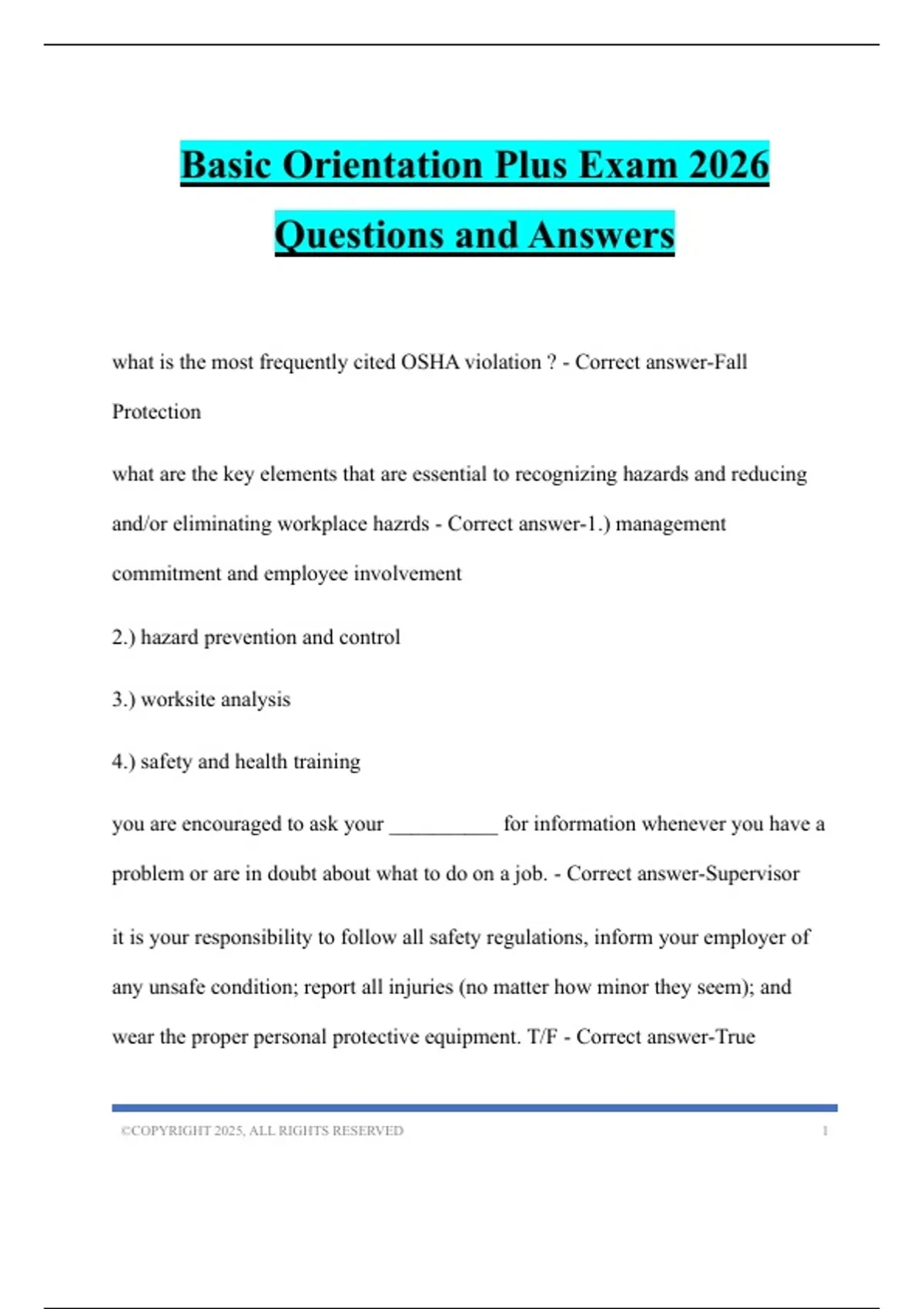 Basic Orientation Plus Exam 2026 Questions and Answers