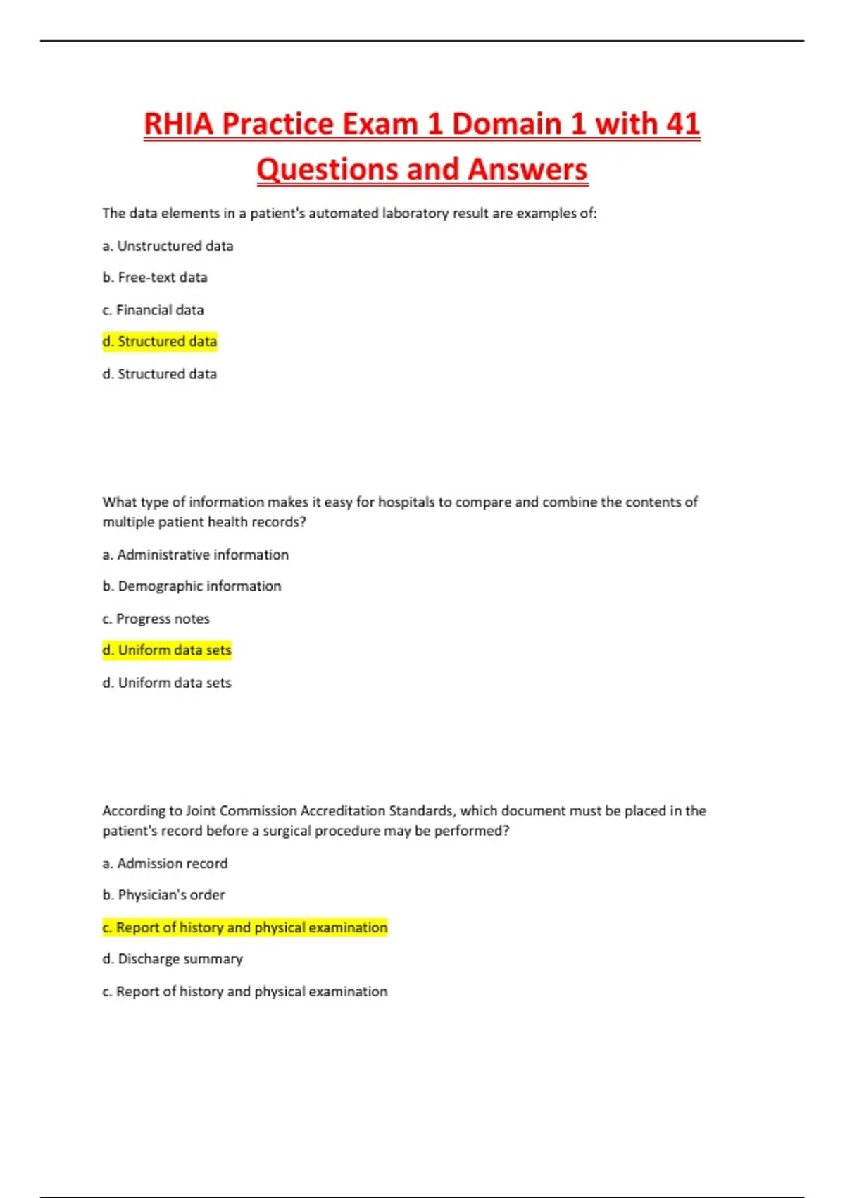 RHIA Practice Exam 1 Domain 1 with 41