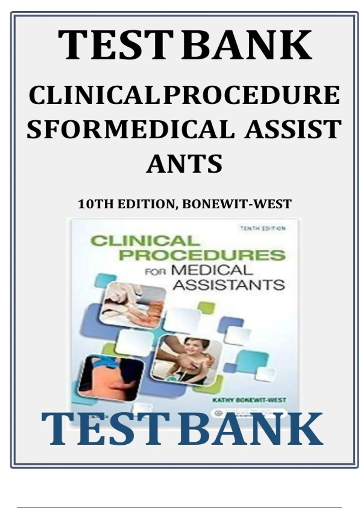 ,Clinical Proceduresfor Medical Assistants 10th Edition Bonewit-West Test Bank