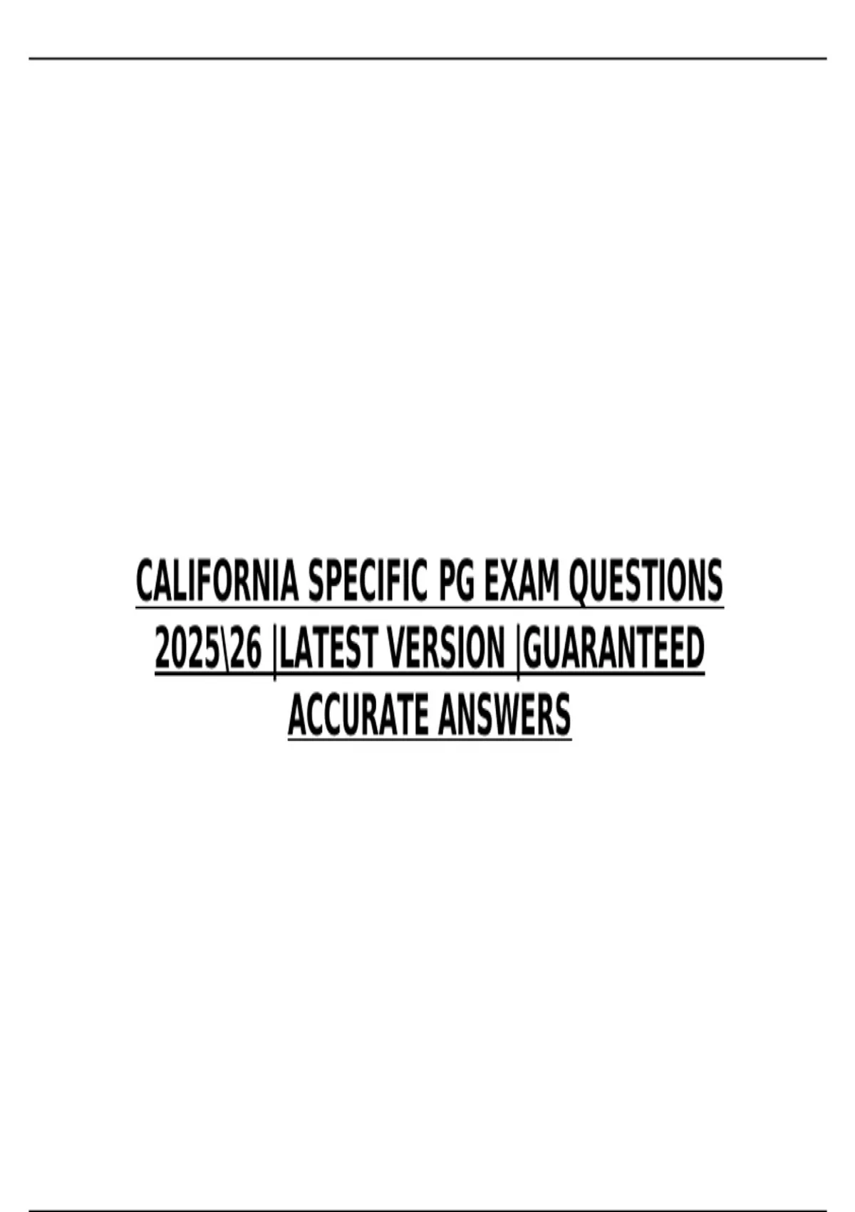 CALIFORNIA SPECIFIC PG EXAM QUESTIONS 202526 |LATEST VERSION |GUARANTEED ACCURATE ANSWERS CALIFORNIA SPECIFIC PG EXAM QUESTIONS 202526 |LATEST VERSION |GUARANTEED ACCURATE ANSWERS CALIFORNIA SPECIFIC PG EXAM QUESTIONS 202526 |LATEST VERSION |GUARANTEED ACCURATE ANSWERS