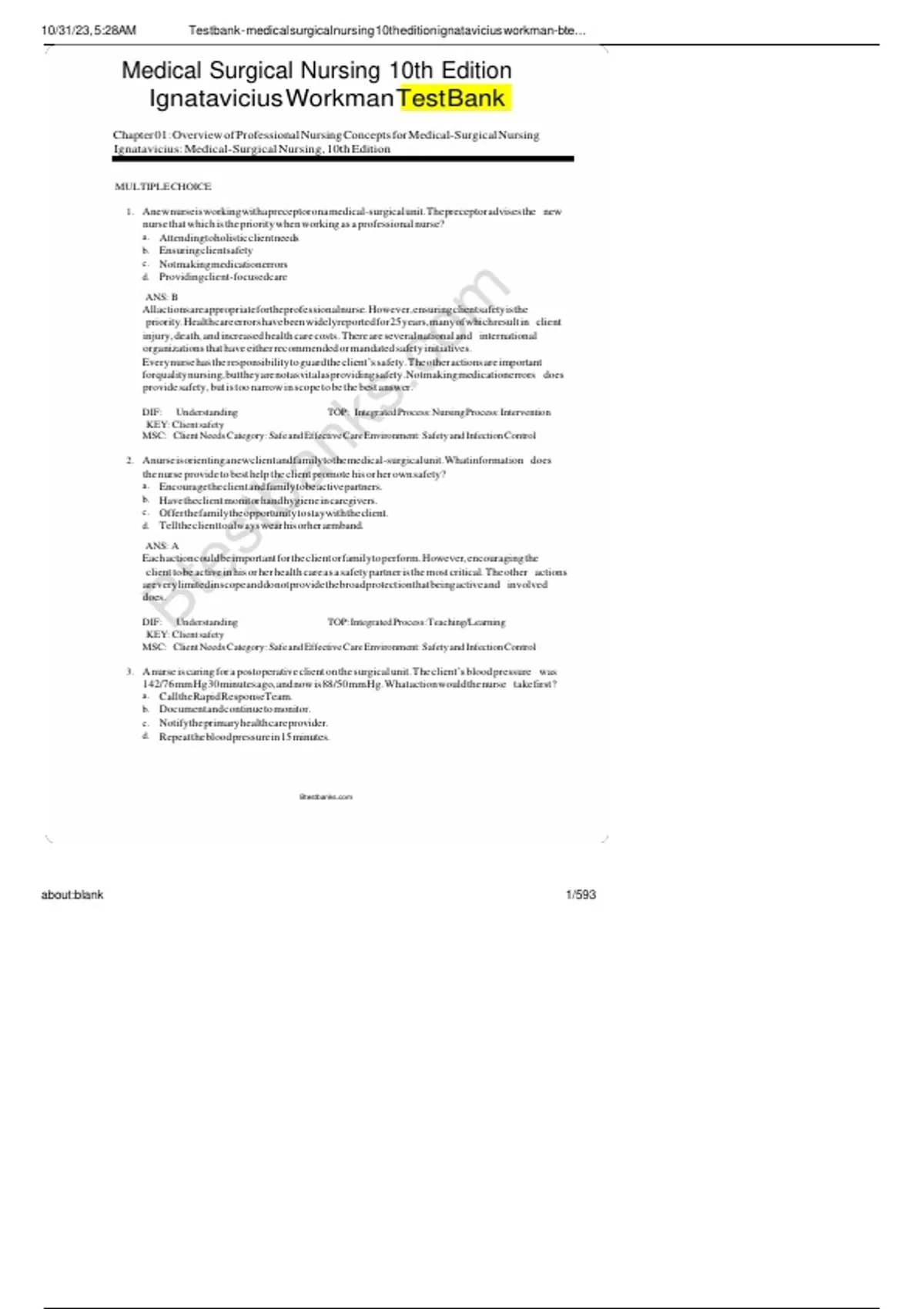 v v Testbank - medical surgical nursing 10th edition ignatavicius workman-bte…