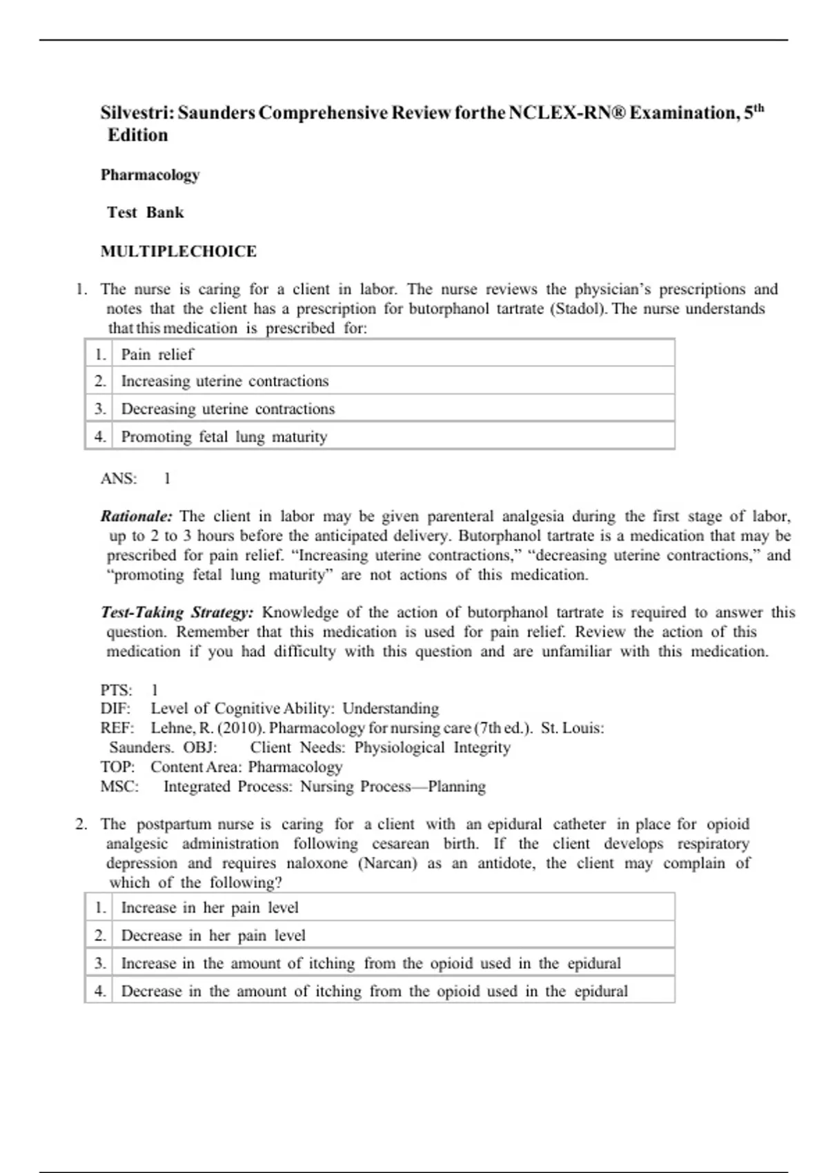 1. The nurse is caring for a client in labor. The nurse reviews the physician’s prescriptions and