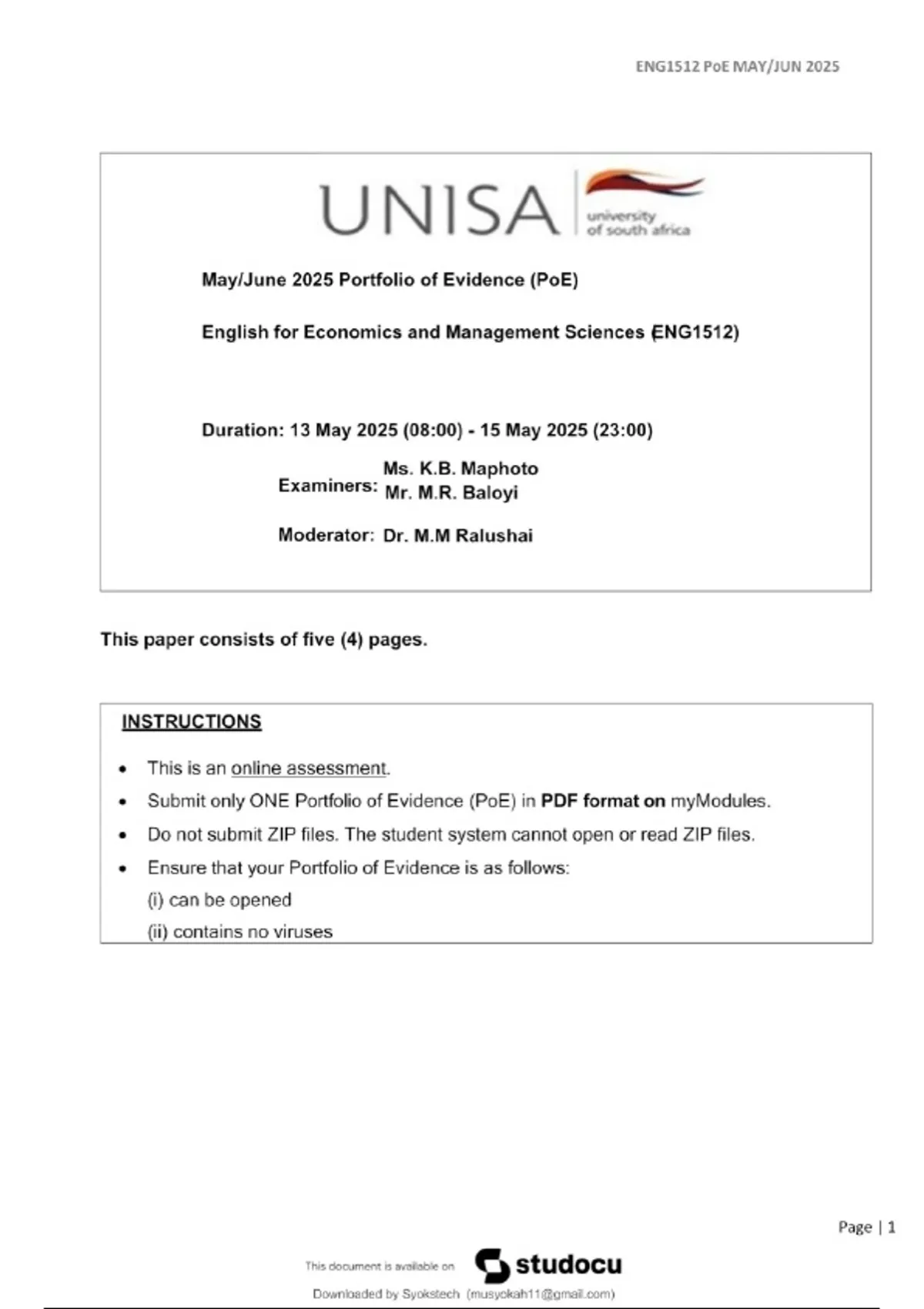ENG1512 PAST EXAM QUESTIONS & ANSWERS 2025