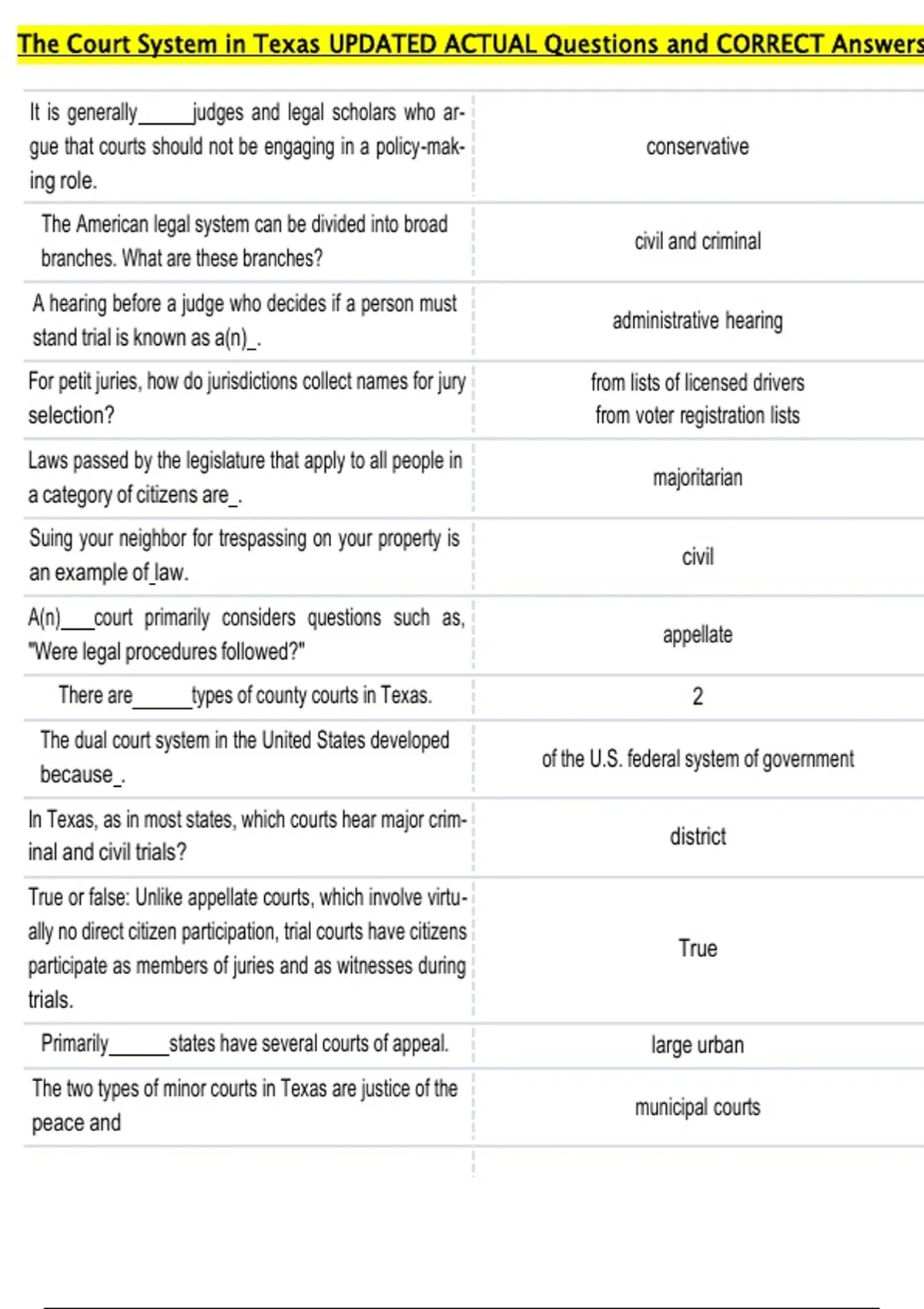 In Texas, as in most states, which courts hear major crim-