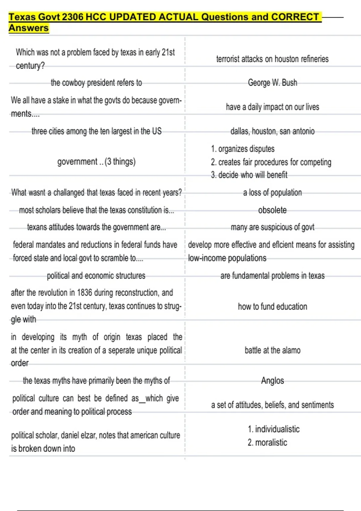 Texas Govt 2306 HCC UPDATED ACTUAL Questions and CORRECT Answers