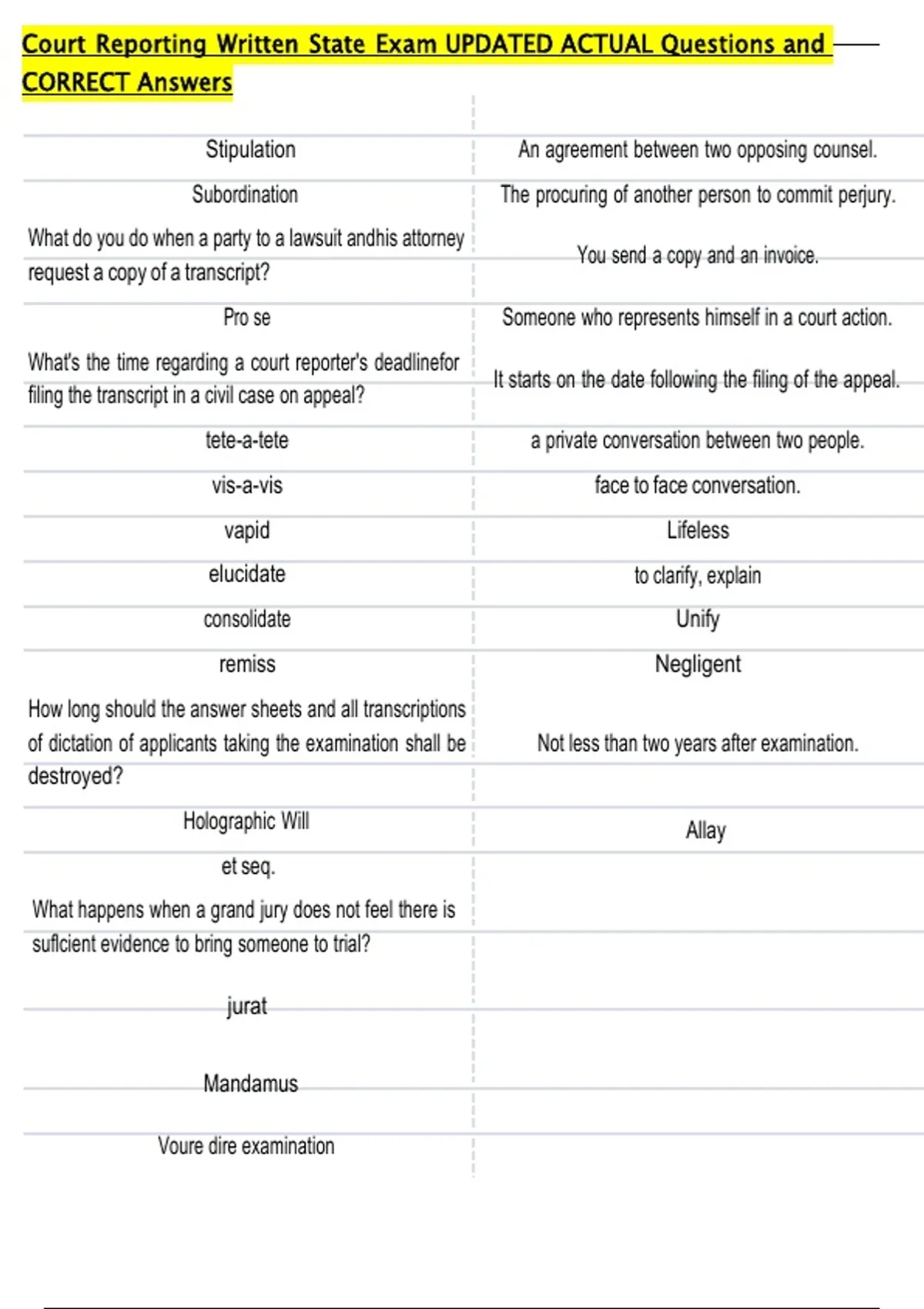 Voure dire examination