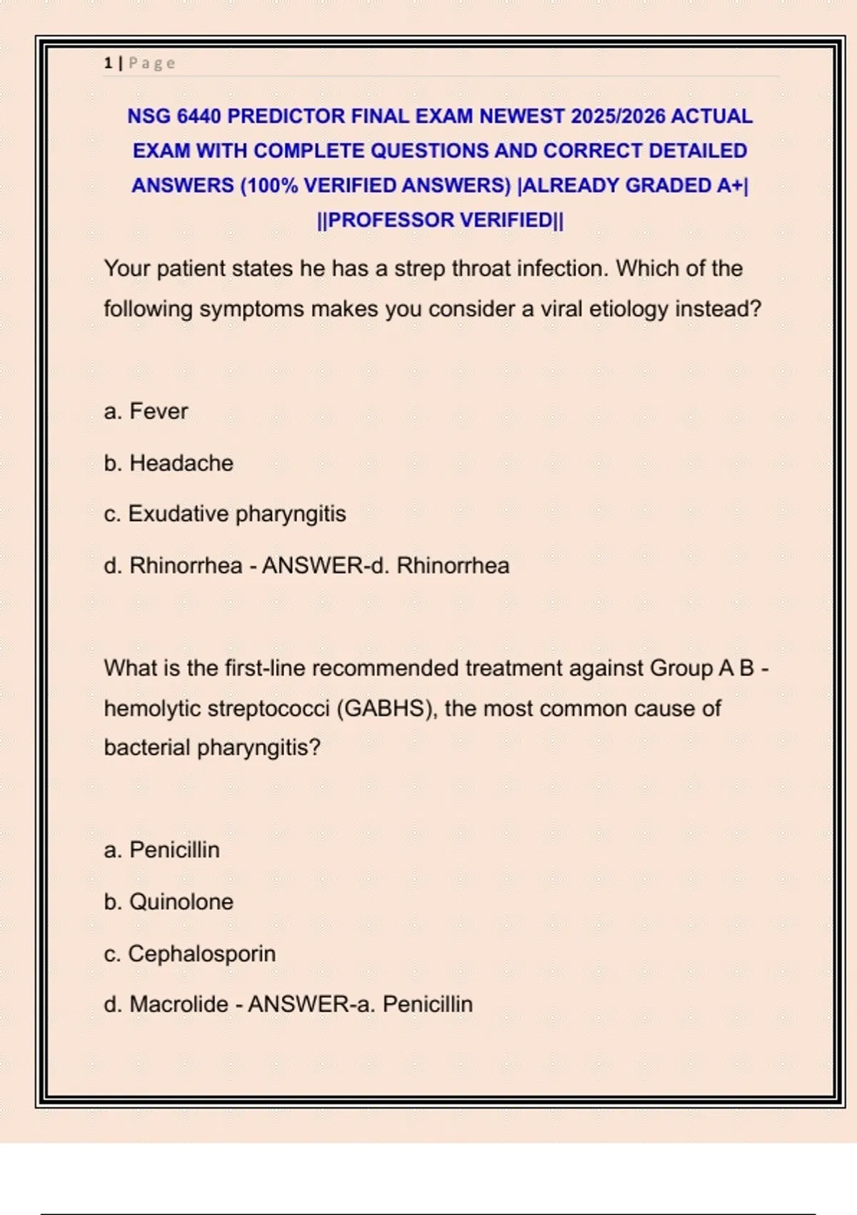 NSG 6440 PREDICTOR FINAL EXAM NEWEST 2025/2026 ACTUAL