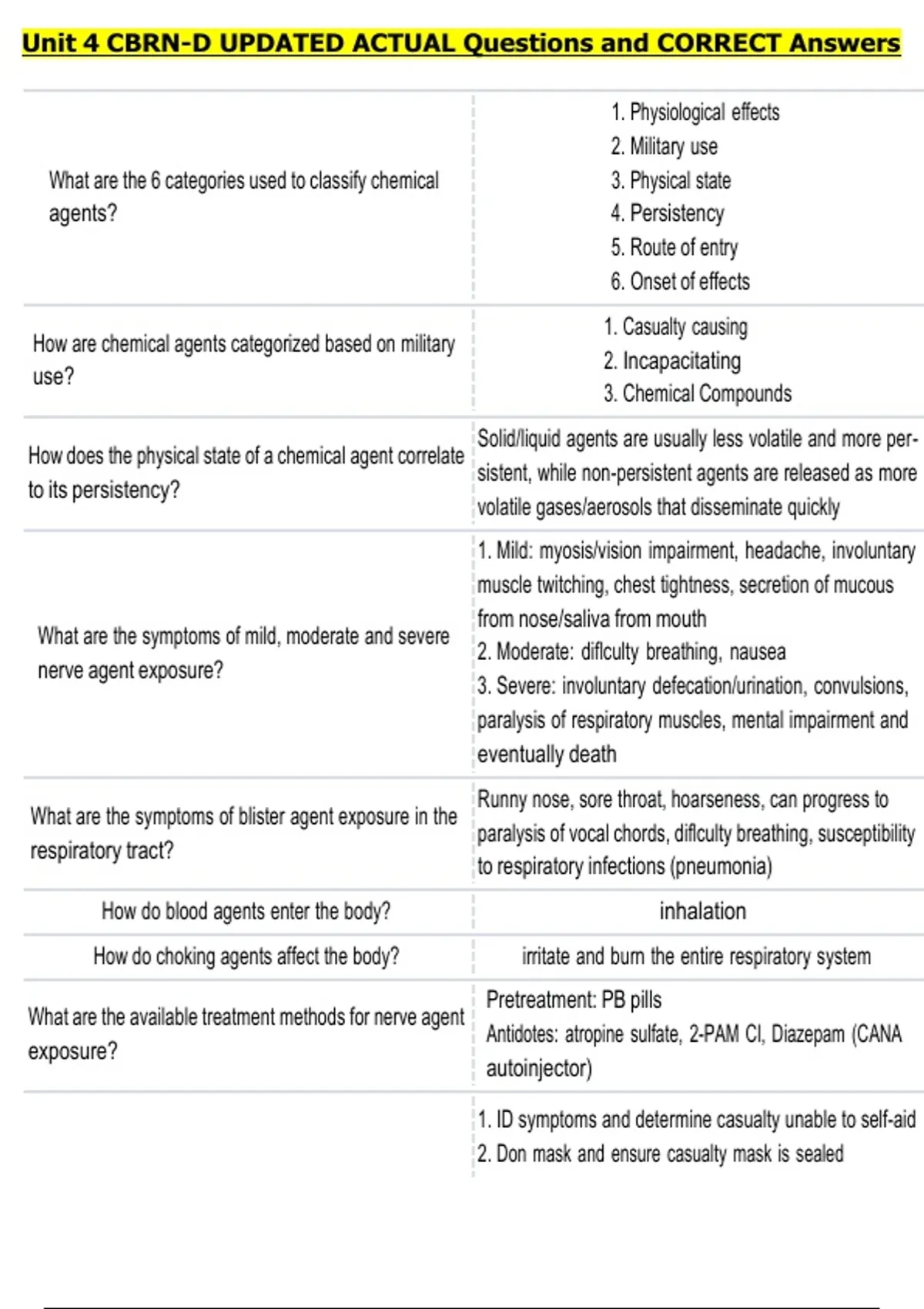 Unit 4 CBRN-D UPDATED ACTUAL Questions and CORRECT Answers