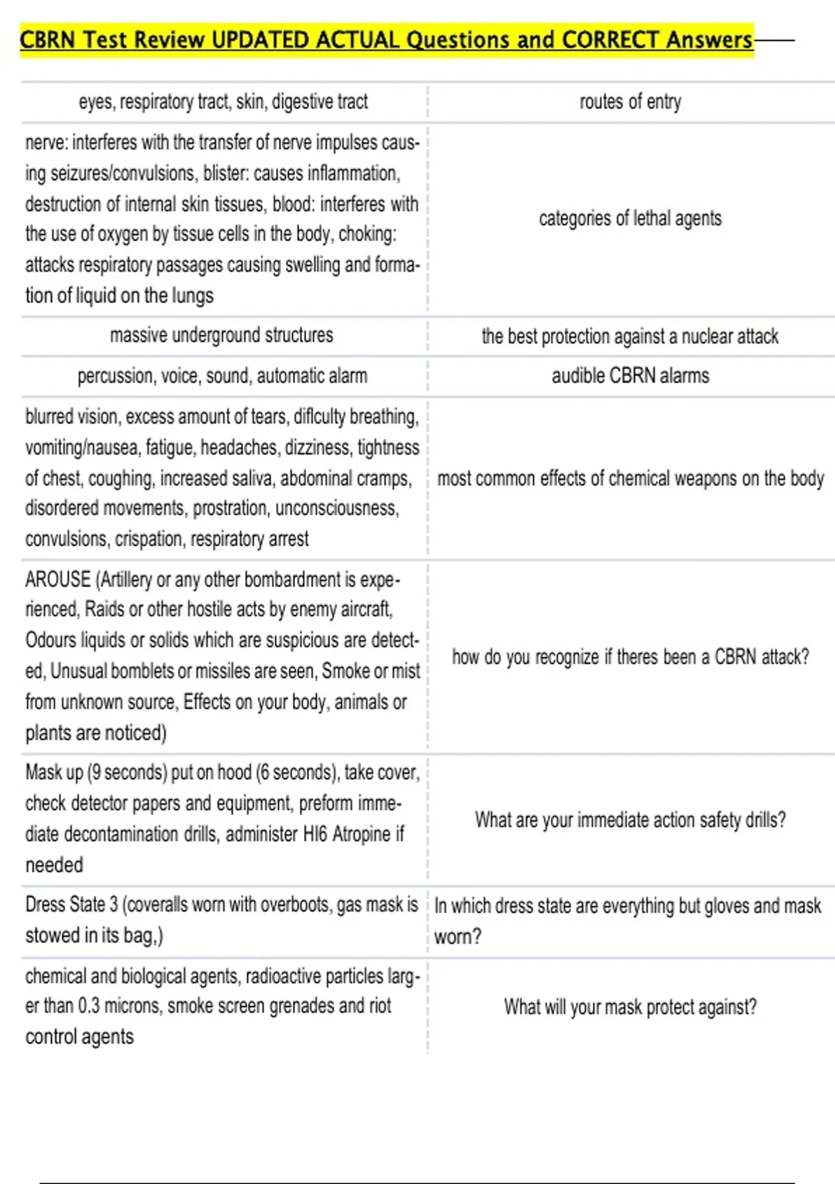 CBRN Test Review UPDATED ACTUAL Questions and CORRECT Answers