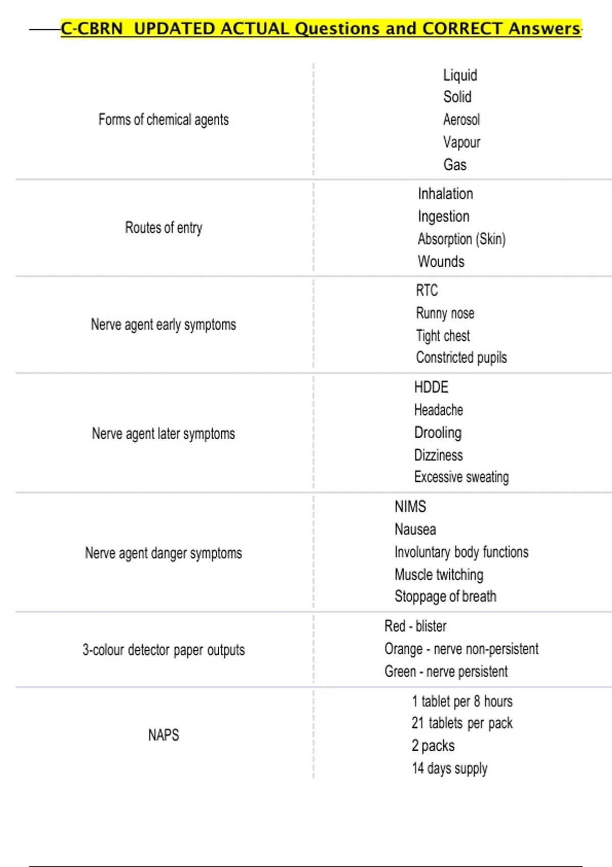 C-CBRN UPDATED ACTUAL Questions and CORRECT Answers