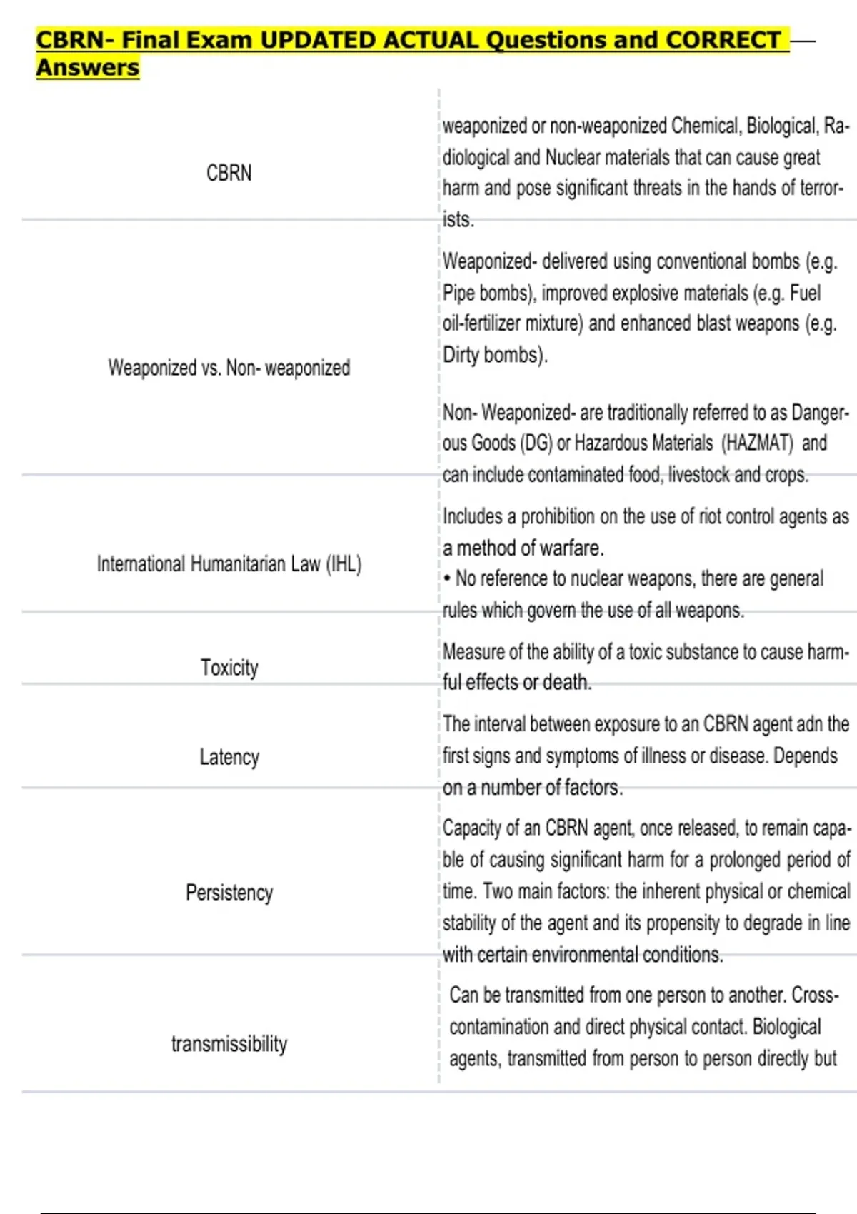 weaponized or non-weaponized Chemical, Biological, Ra-