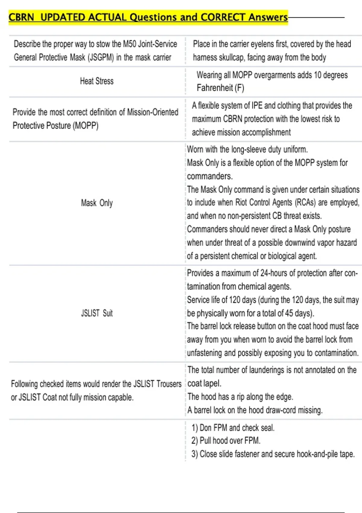 CBRN UPDATED ACTUAL Questions and CORRECT Answers
