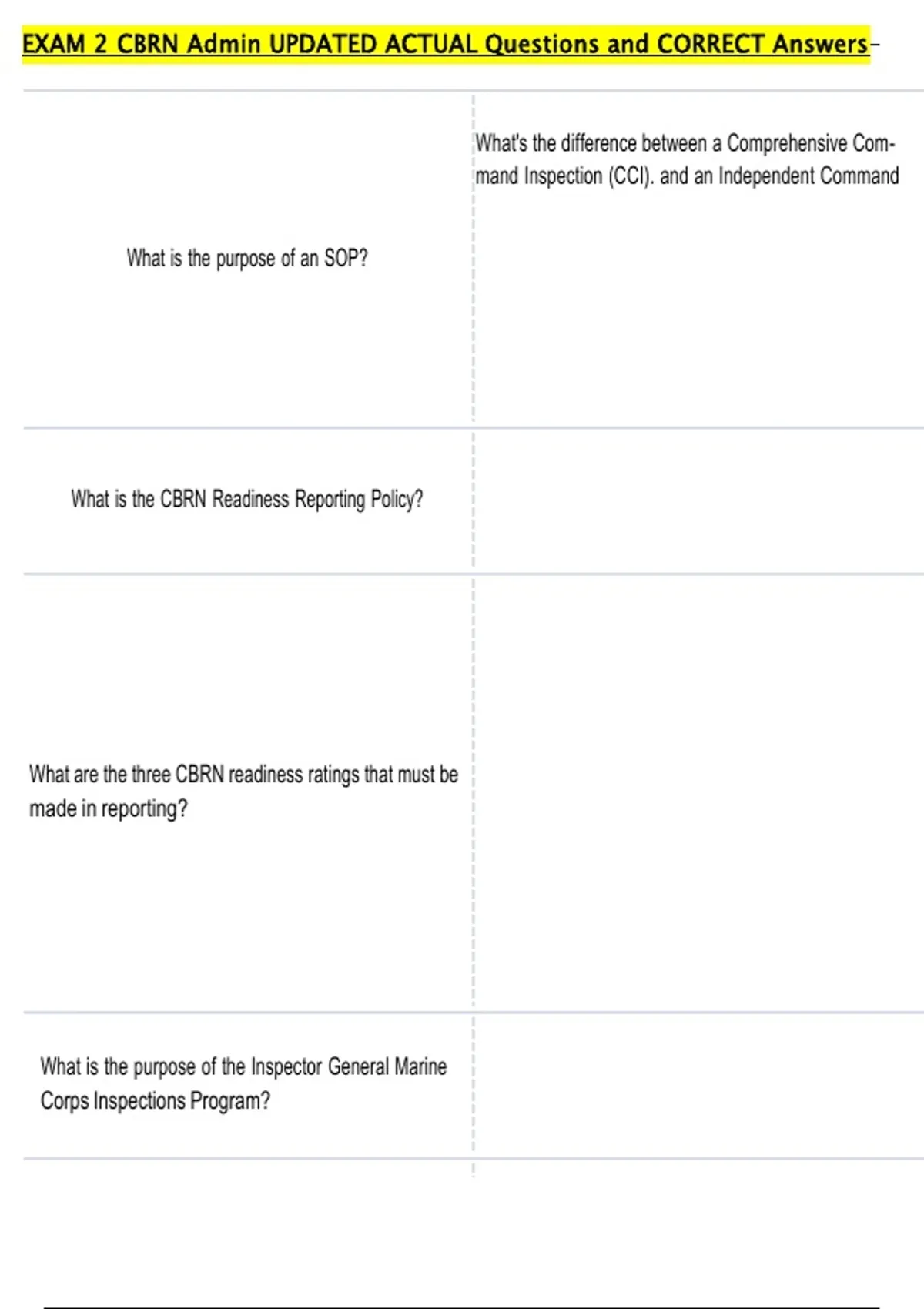 EXAM 2 CBRN Admin UPDATED ACTUAL Questions and CORRECT Answers