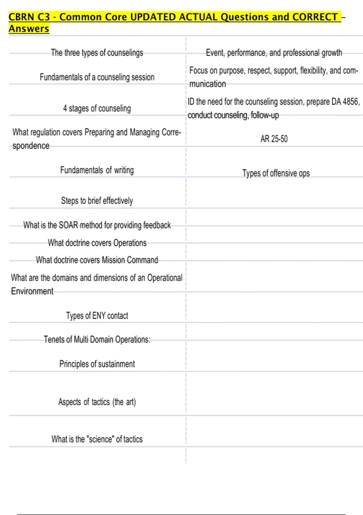 CBRN C3 - Common Core UPDATED ACTUAL Questions and CORRECT