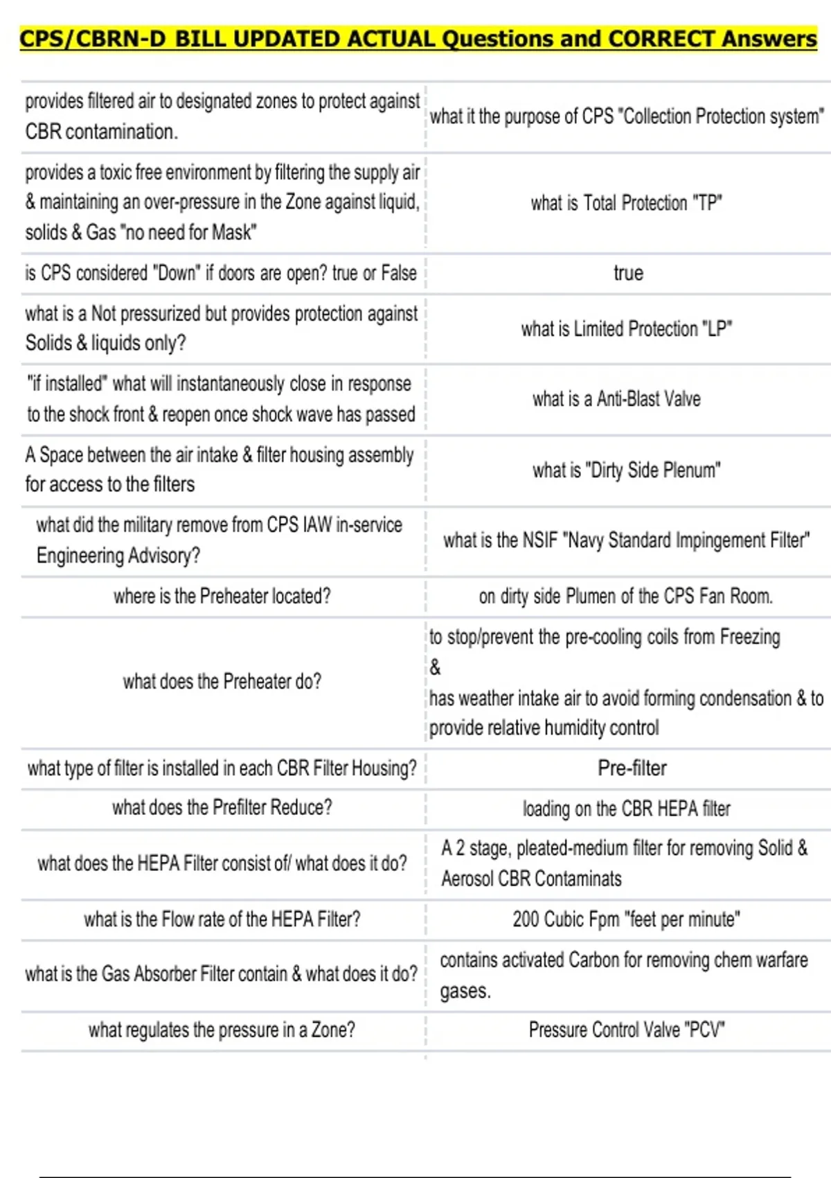 CPS/CBRN-D BILL UPDATED ACTUAL Questions and CORRECT Answers