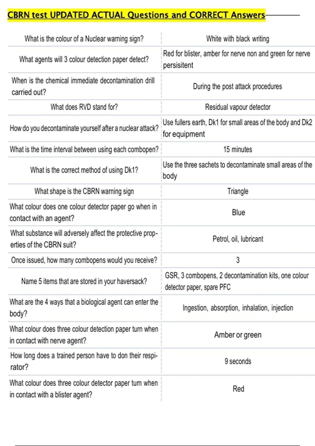 CBRN test UPDATED ACTUAL Questions and CORRECT Answers