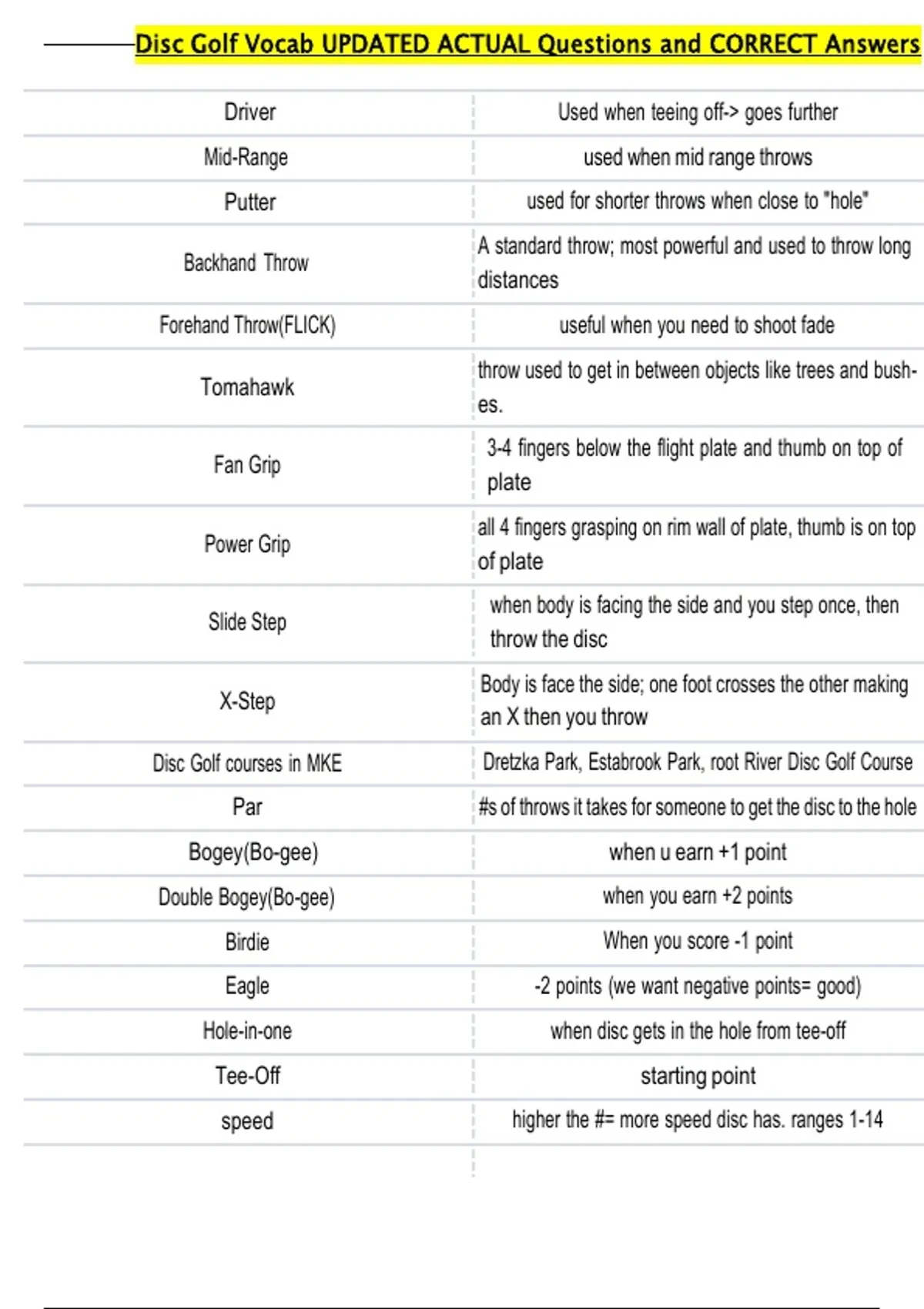 Par #s of throws it takes for someone to get the disc to the hole