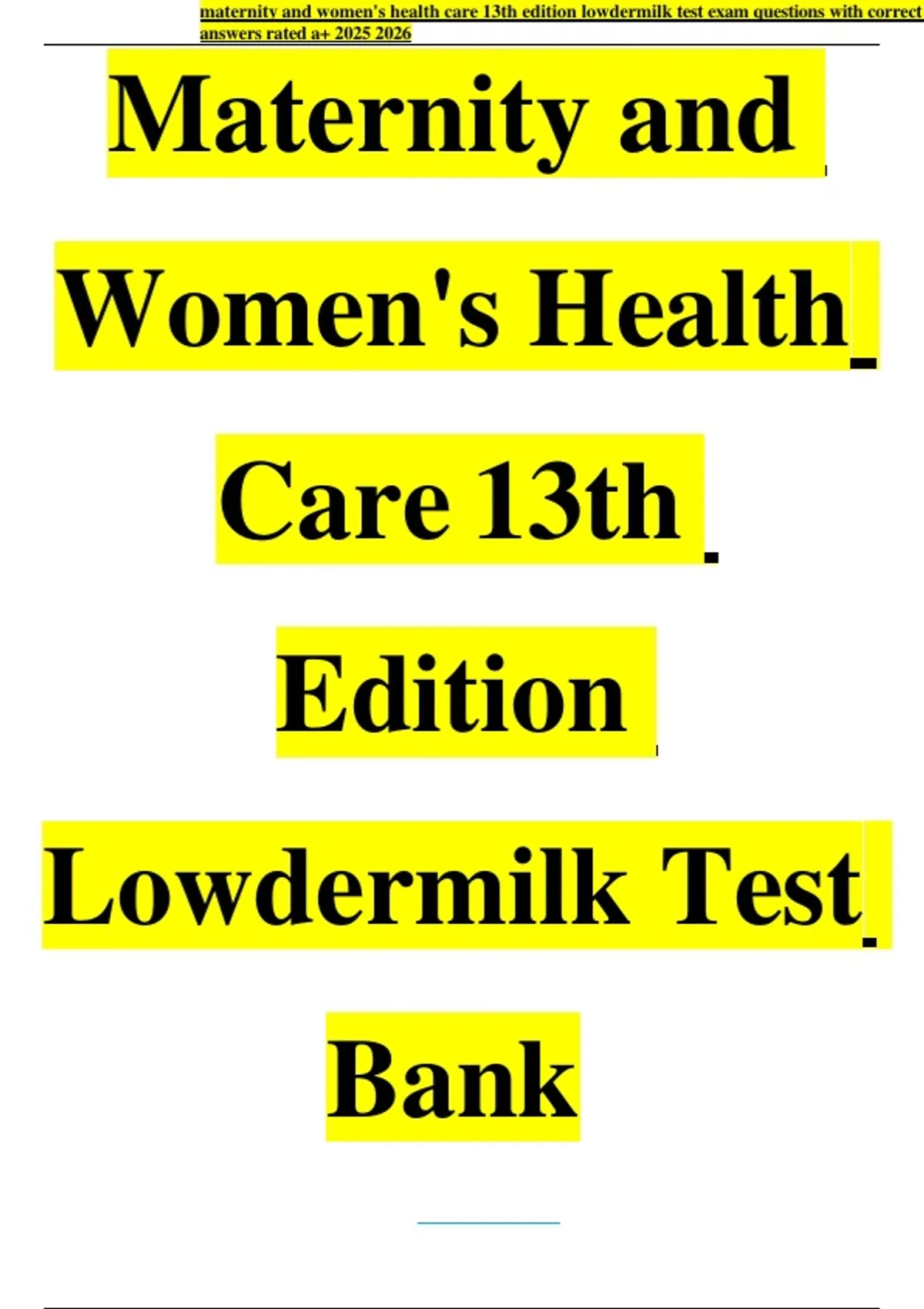 maternity and women's health care 13th edition lowdermilk test exam questions with correct answers rated a+ Test Bank for Maternity & Women’s Health Care, 13th Edition,Lowdermilk. UPDATED VERSION,2025/2026!!!! ALL CHAPTERS FULLY COVERED !!!! GET A COPY,GET AN A+