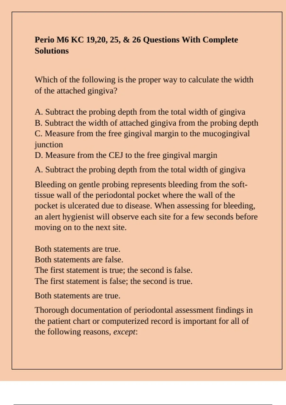 pocket is ulcerated due to disease. When assessing for bleeding,