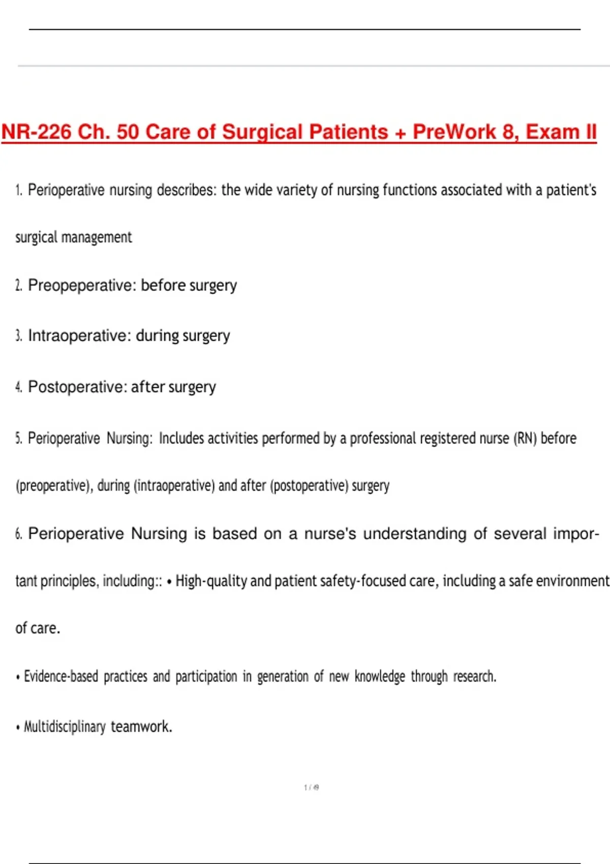 NR-226 Ch. 50 Care of Surgical Patients + PreWork 8, Exam II