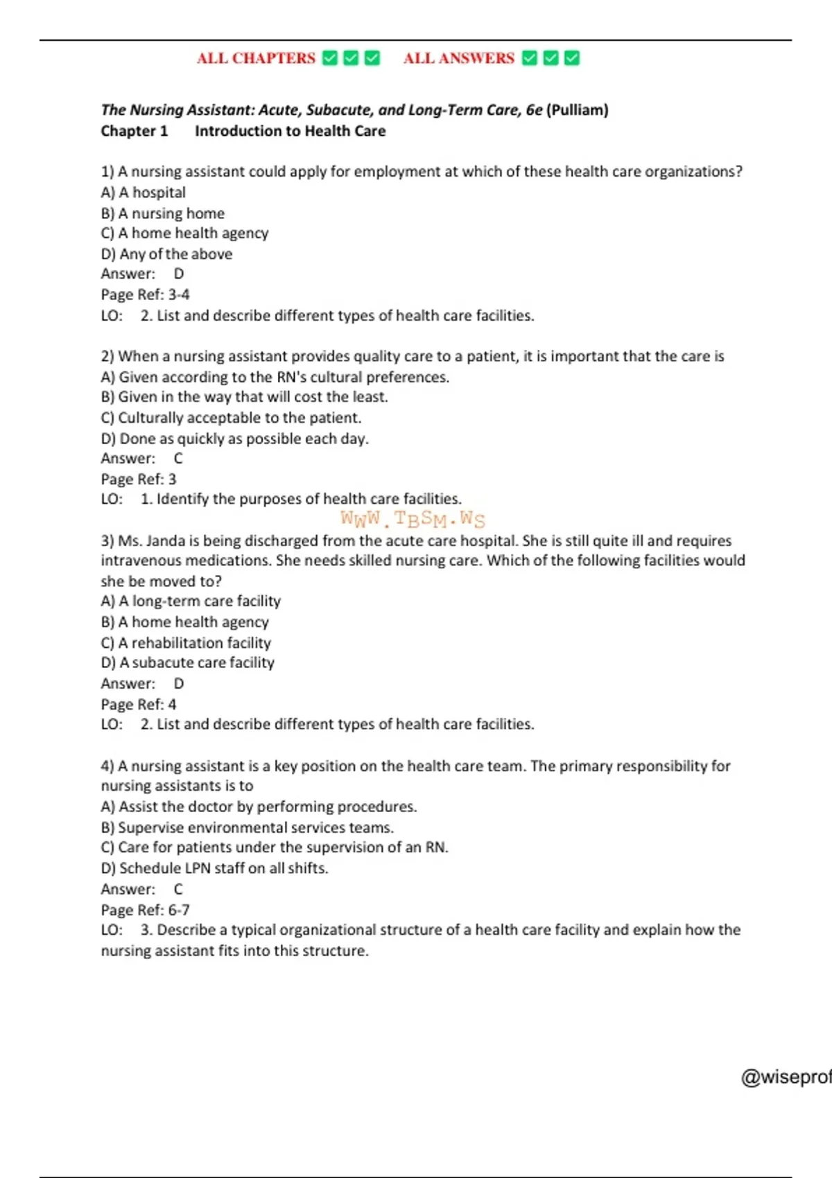 1) A nursing assistant could apply for employment at which of these health care organizations?