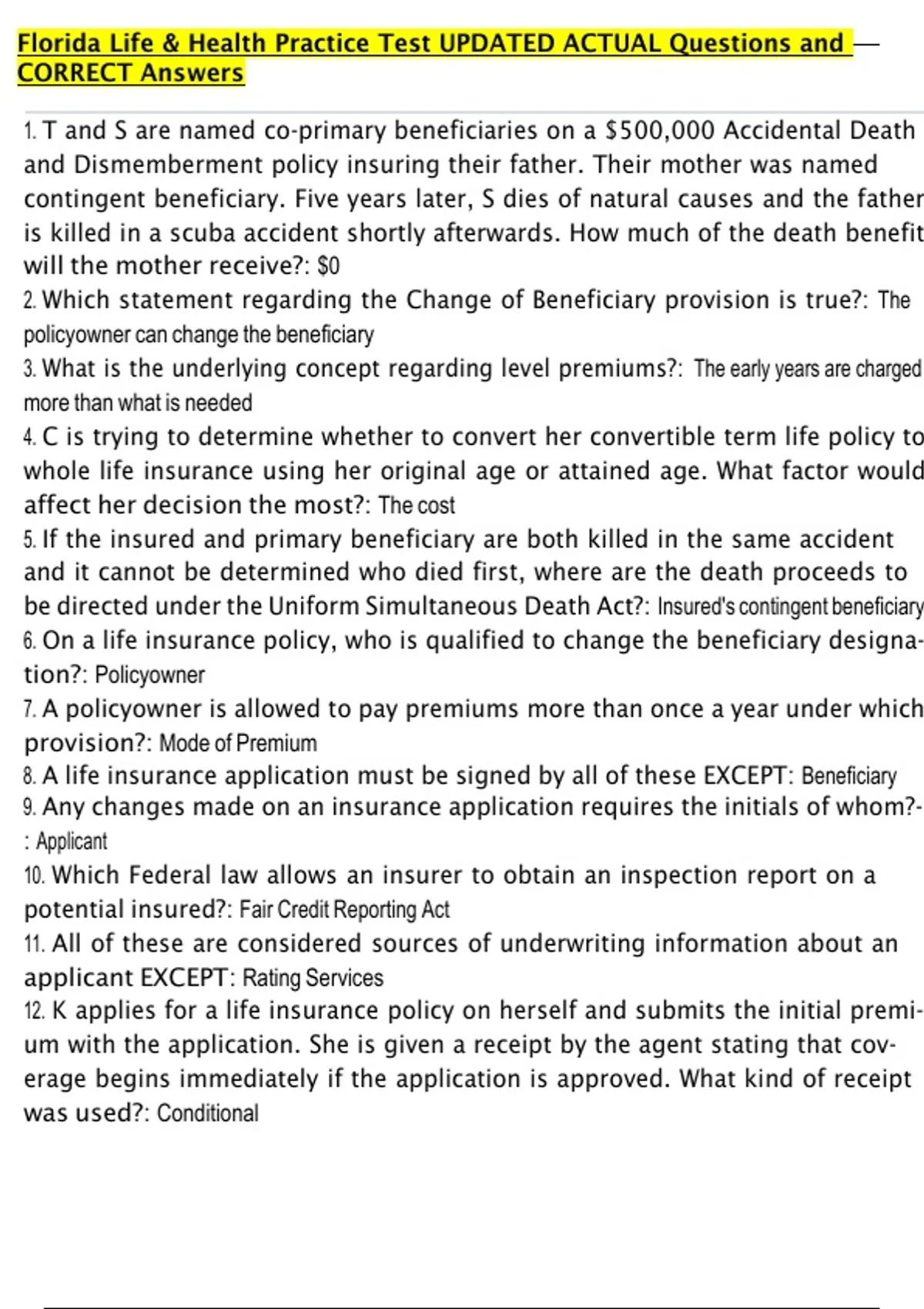 1. T and S are named co-primary beneficiaries on a $500,000 Accidental Death