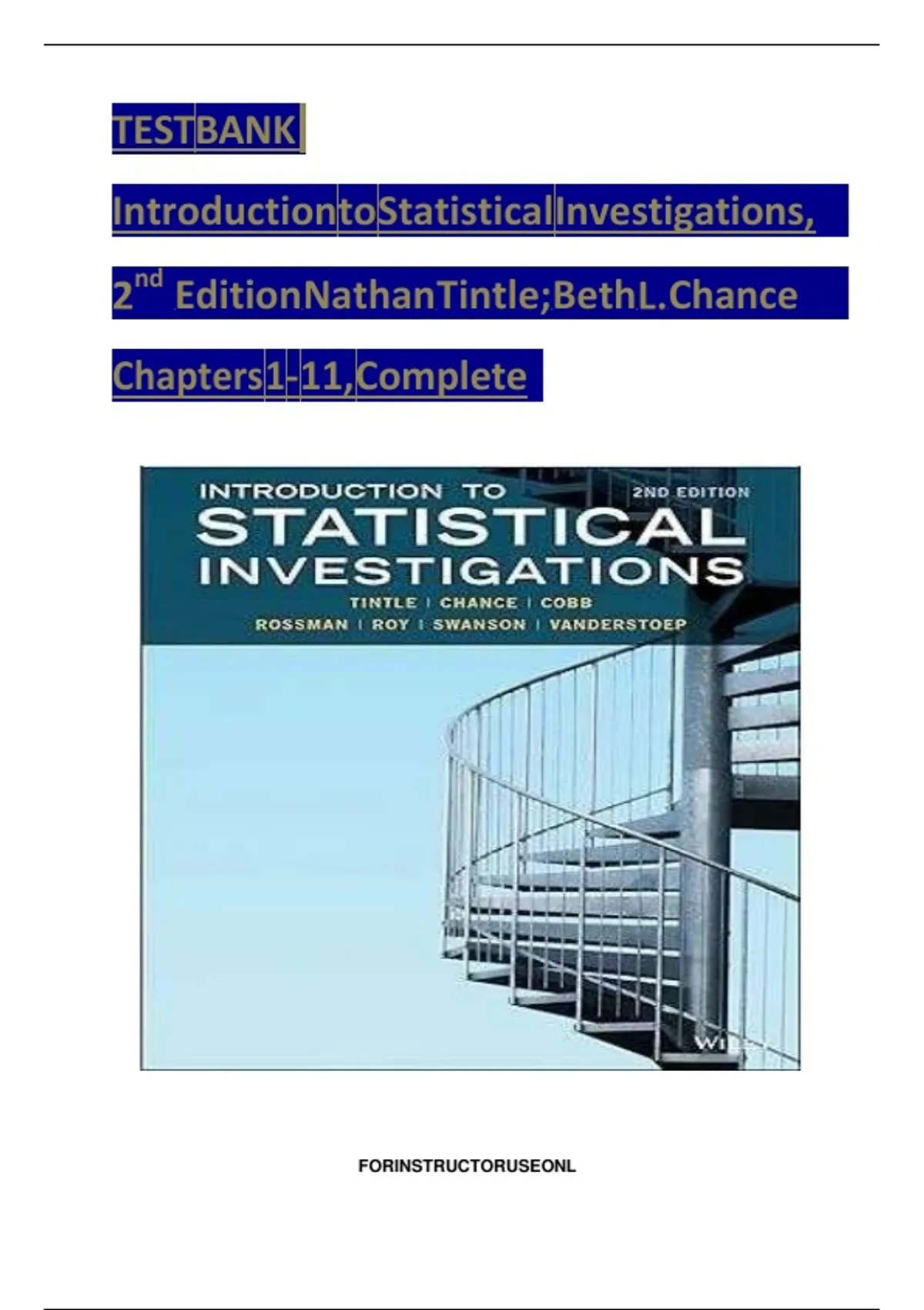 , 1-2 TestBankfor IntroductiontoStatisticalInvestigations,2ndEdition