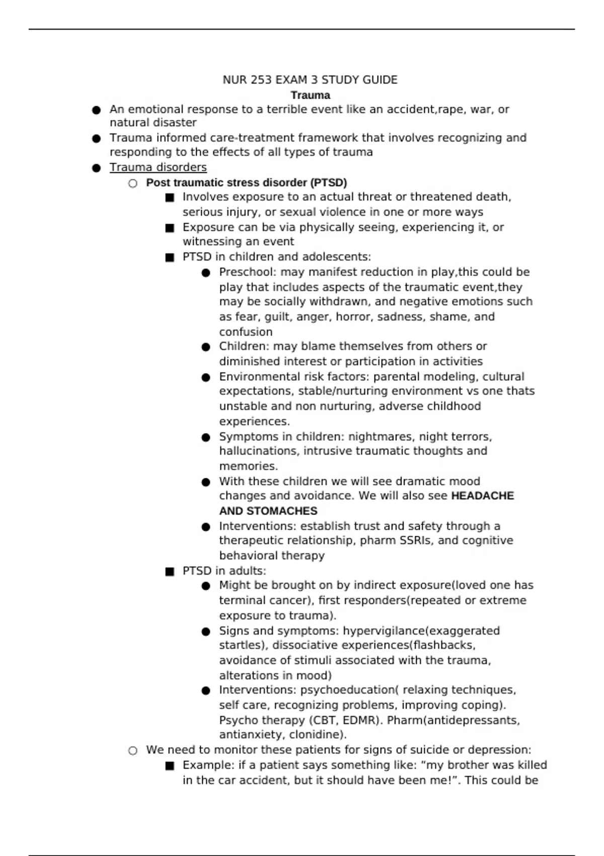 exposure to trauma).