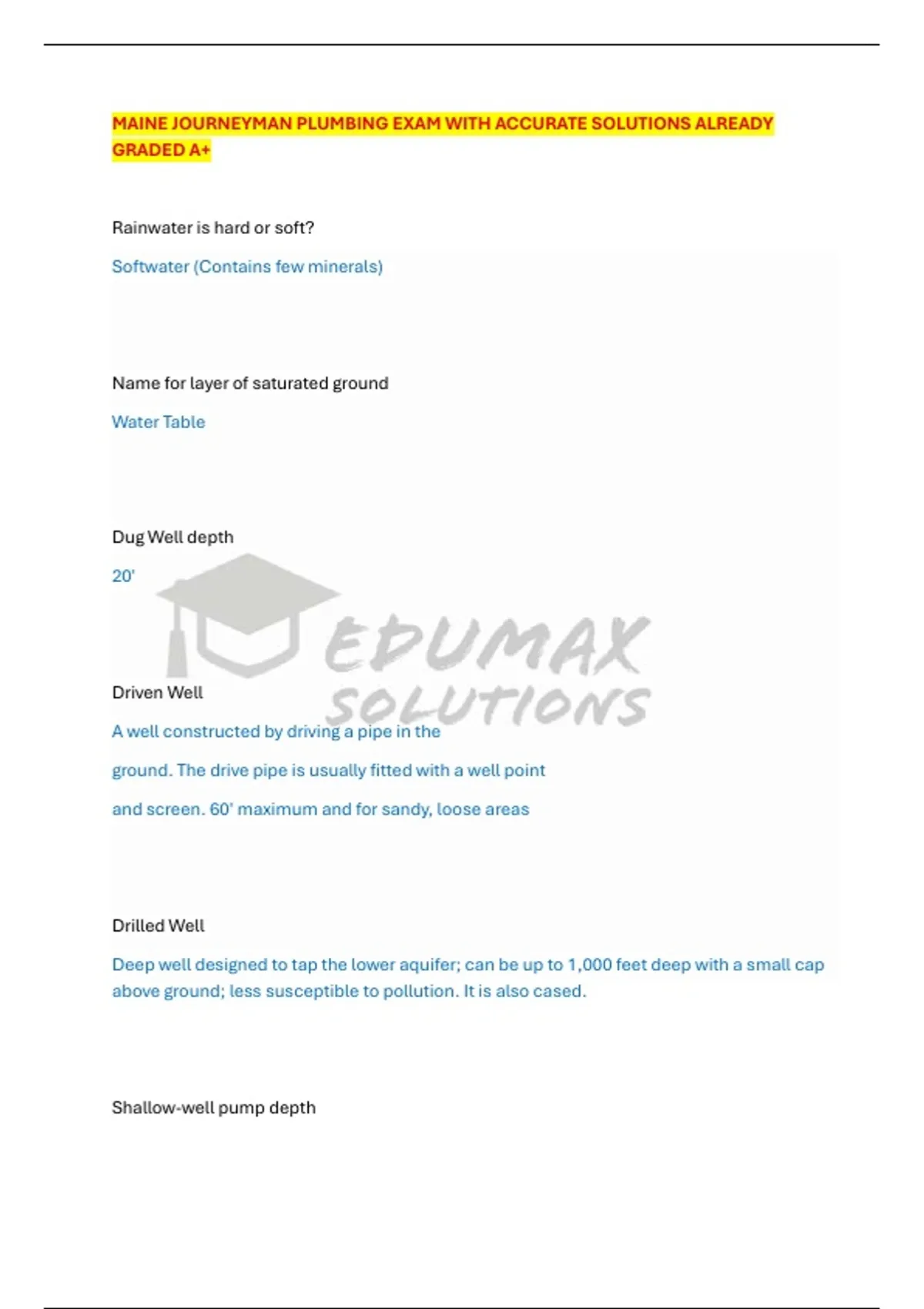 MAINE JOURNEYMAN PLUMBING EXAM WITH ACCURATE SOLUTIONS ALREADY