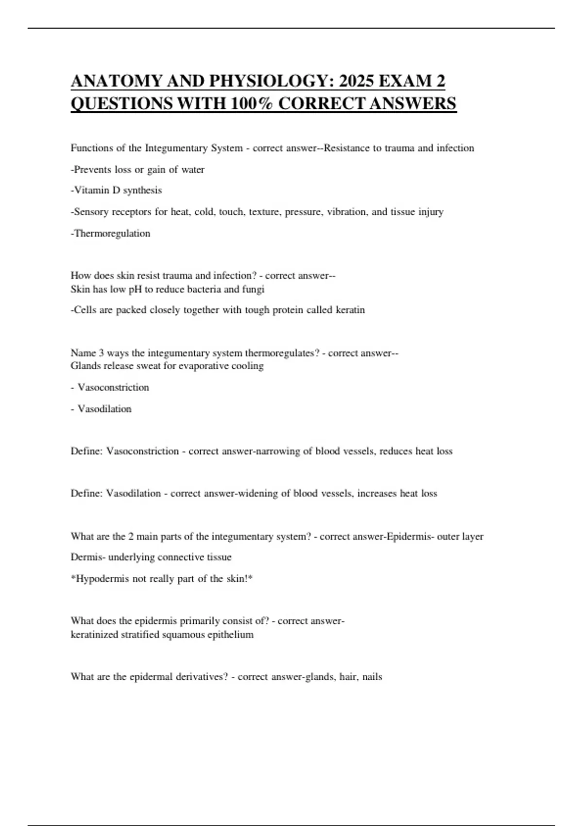 TEST BANK FOR ANATOMY AND PHYSIOLOGY: 2025 EXAM 2 QUESTIONS WITH 100% CORRECT ANSWERS