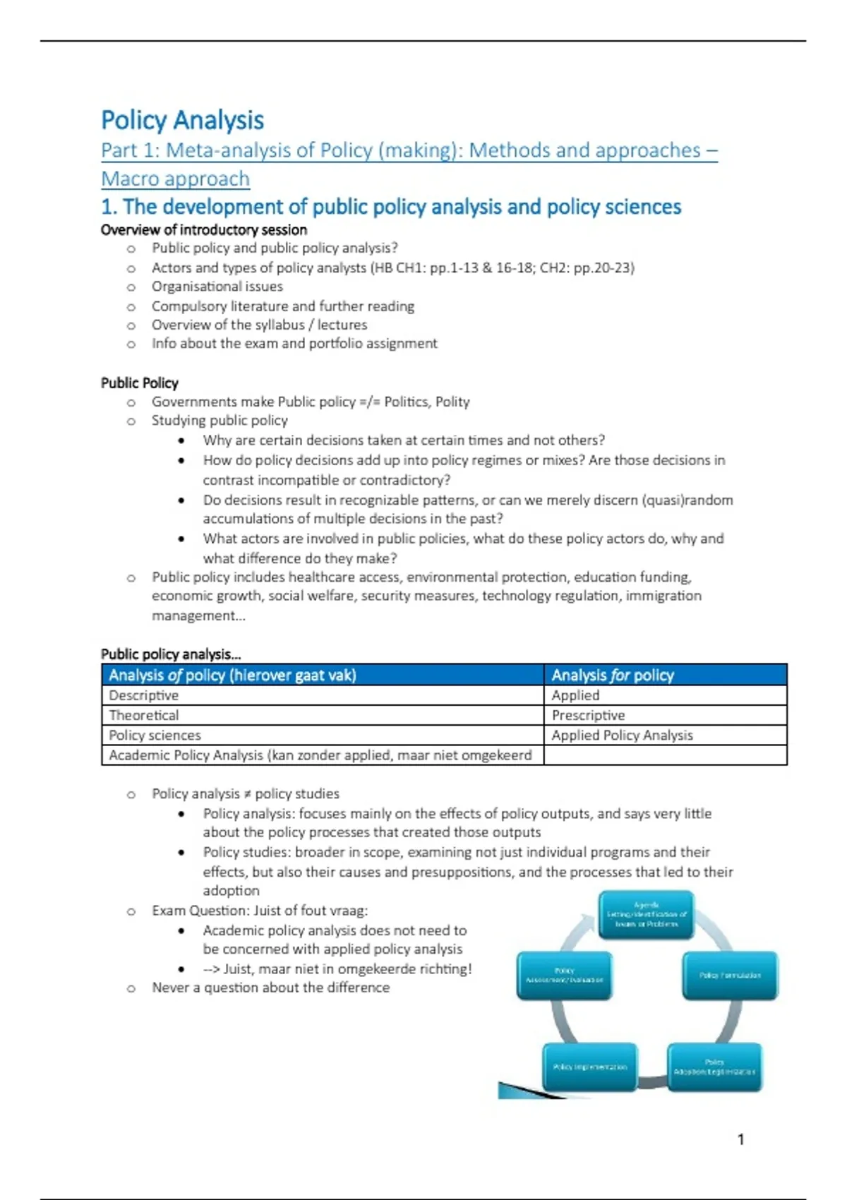 Analysis of policy (hierover gaat vak) Analysis for policy
