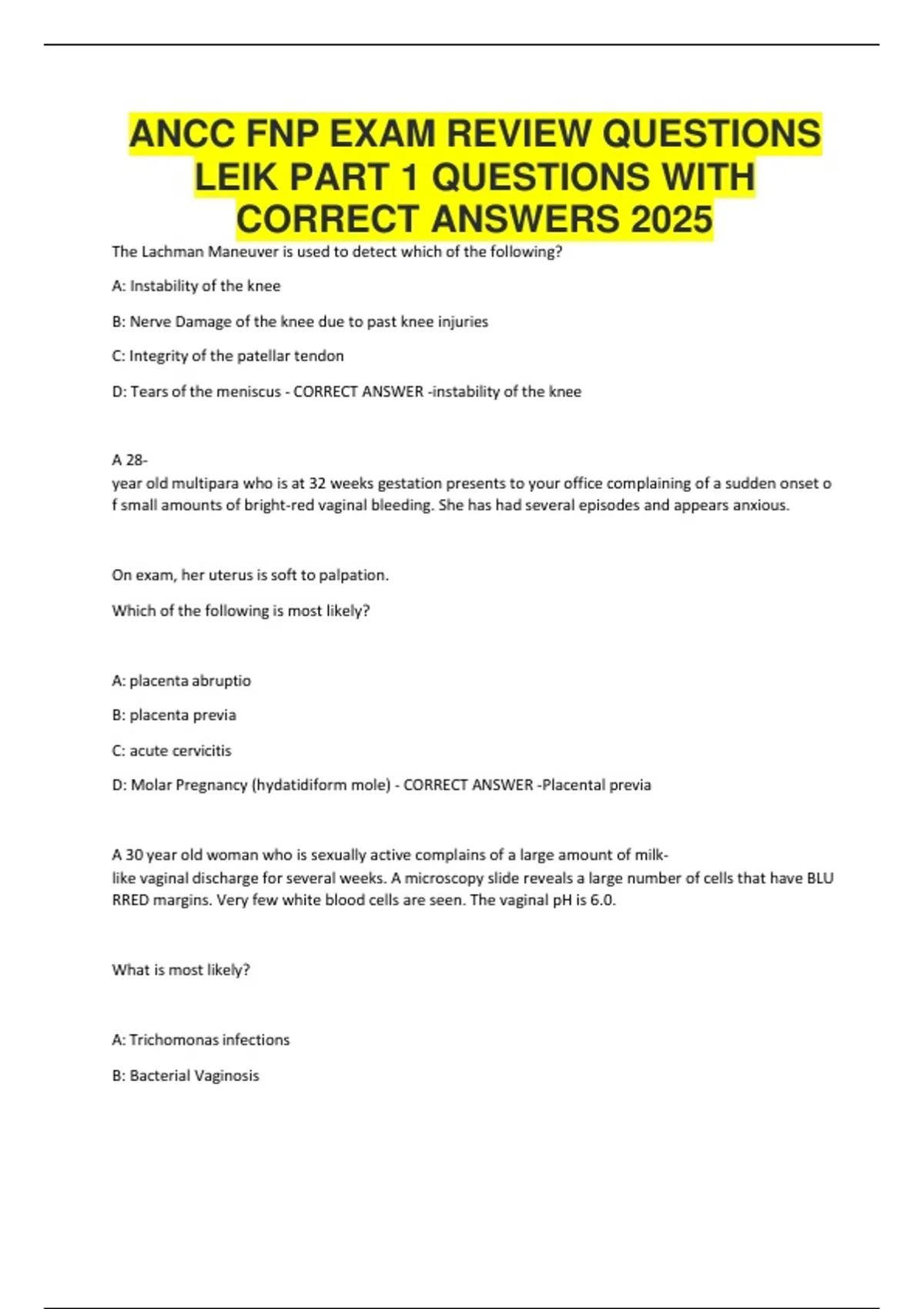 ANCC FNP EXAM REVIEW QUESTIONS LEIK PART 1 QUESTIONS WITH CORRECT ANSWERS 2025