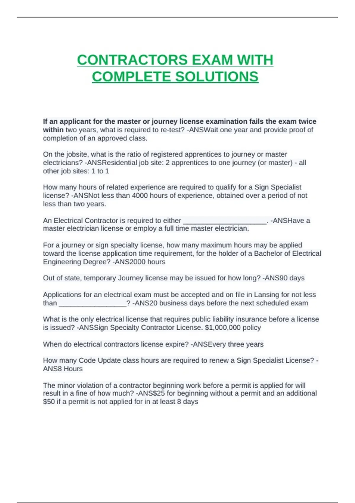 Exam of 3 pages for the course Contractors Licence at Contractors Licence (Contractors)