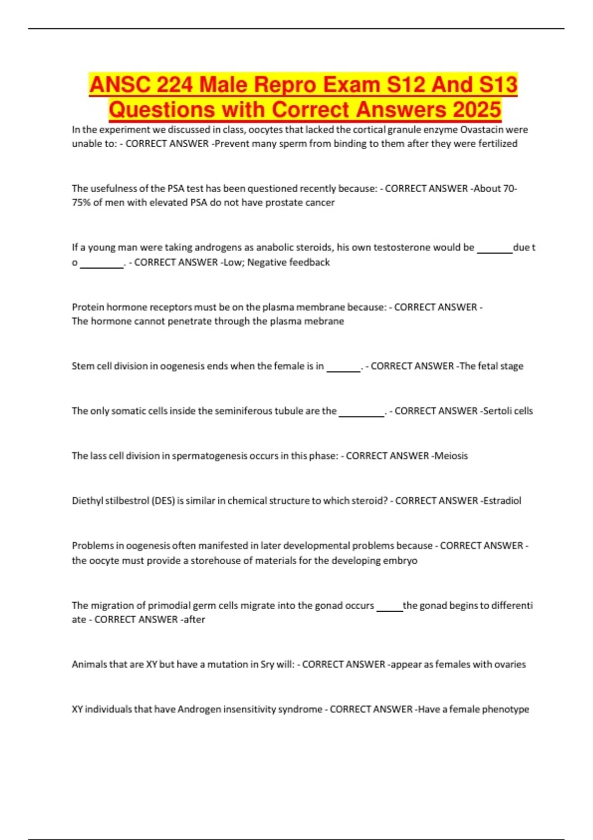 The lass cell division in spermatogenesis occurs in this phase: - CORRECT ANSWER -Meiosis