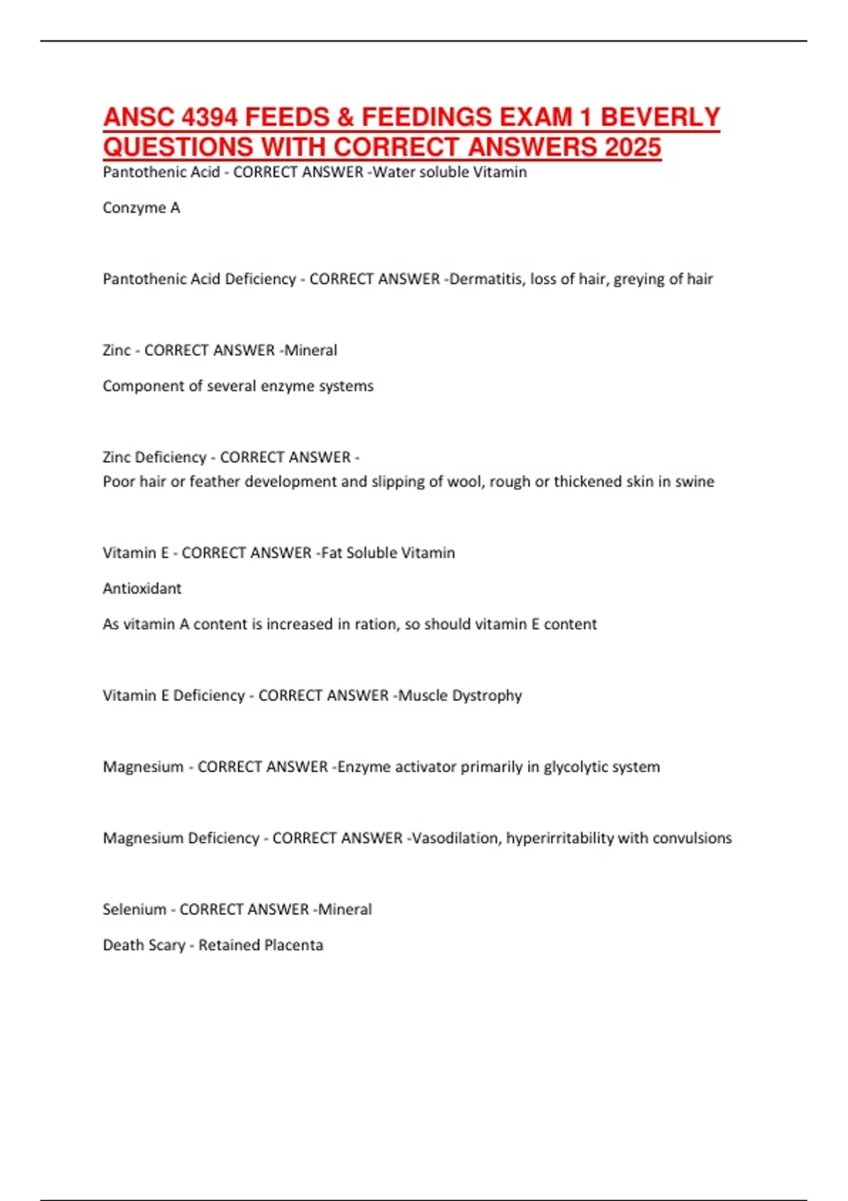 ANSC 4394 FEEDS & FEEDINGS EXAM 1 BEVERLY