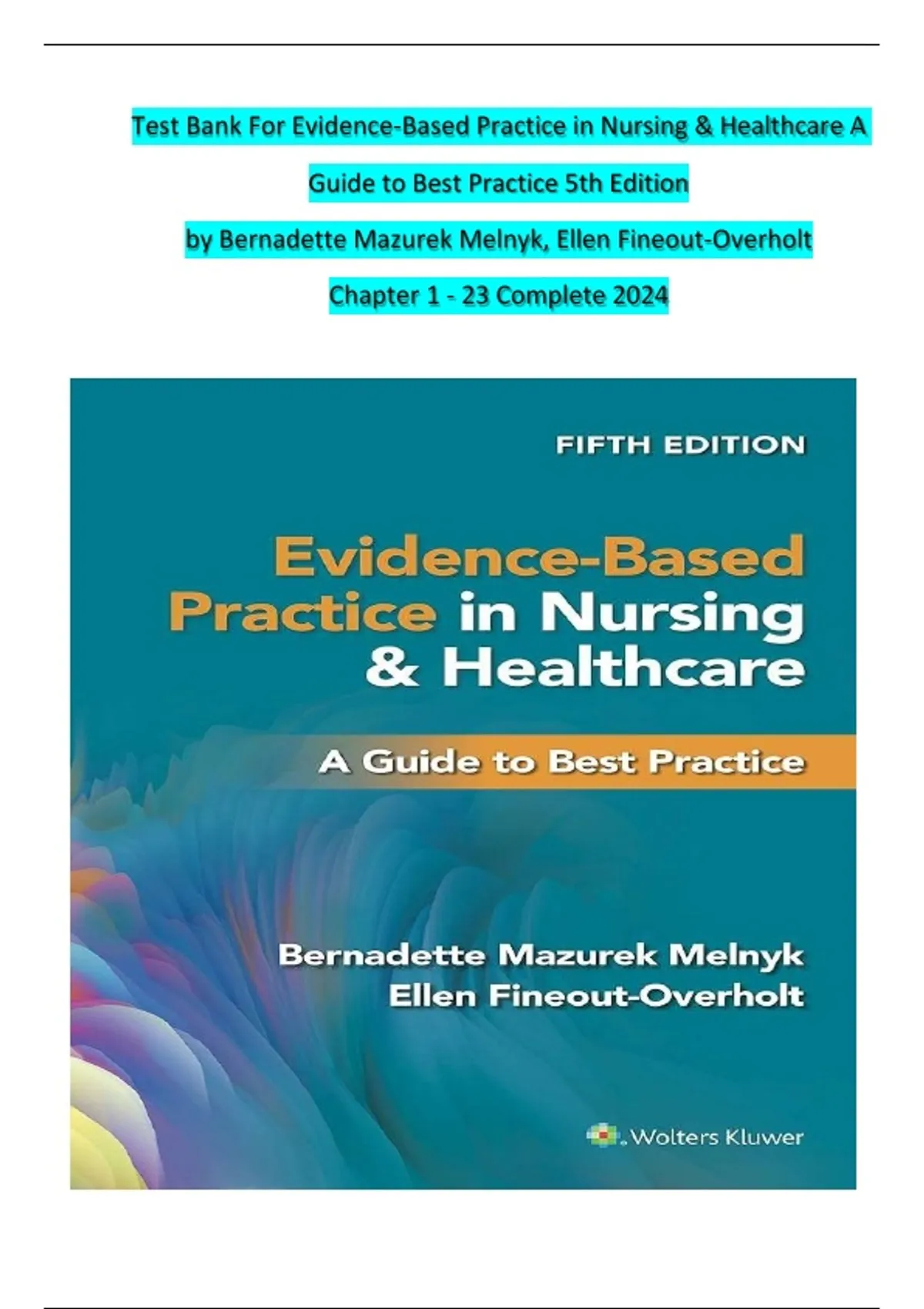 Test Bank For Evidence-Based Practice in Nursing & Healthcare A Guide to Best Practice 5th Edition by Bernadette Mazurek Melnyk, Ellen Fineout-Overholt Chapter 1 - 23 Complete 2024